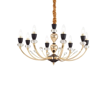 Żyrandol VANITY Złoty (VANITY_SP8) marki Ideal Lux to niezwykły element oświetleniowy, który doskonale wpisuje się w klasyczne wnętrza, dodając im elegancji i luksusu. Jego złoty kolor wprowadza do pomieszczenia ciepło oraz szyk, sprawiając, że każda aranżacja zyskuje na atrakcyjności. Model ten charakteryzuje się niezwykle stylowym, retro wyglądem, co czyni go idealnym wyborem do salonu, jadalni, sypialni oraz przedpokoju.