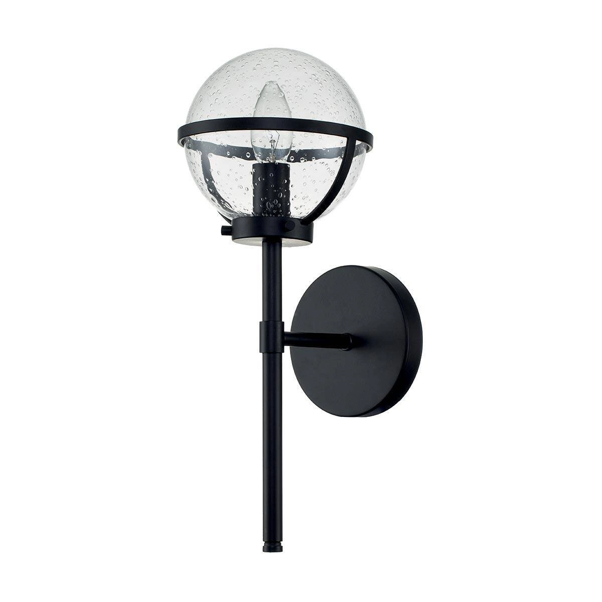 Kinkiet został zaprojektowany z myślą o wewnętrznych przestrzeniach, ze szczególnym uwzględnieniem łazienek. Wyposażony w pojedyncze źródło światła, o maksymalnej mocy 40 W z trzonkiem E14, pozwala na dobór idealnej żarówki, dostosowanej do indywidualnych potrzeb użytkownika. Szklany klosz w formie przezroczystej kuli sprawia, że emitowane światło jest miękkie i przyjemne dla oka, co zapewnia odpowiednią atmosferę w każdej godzinie.