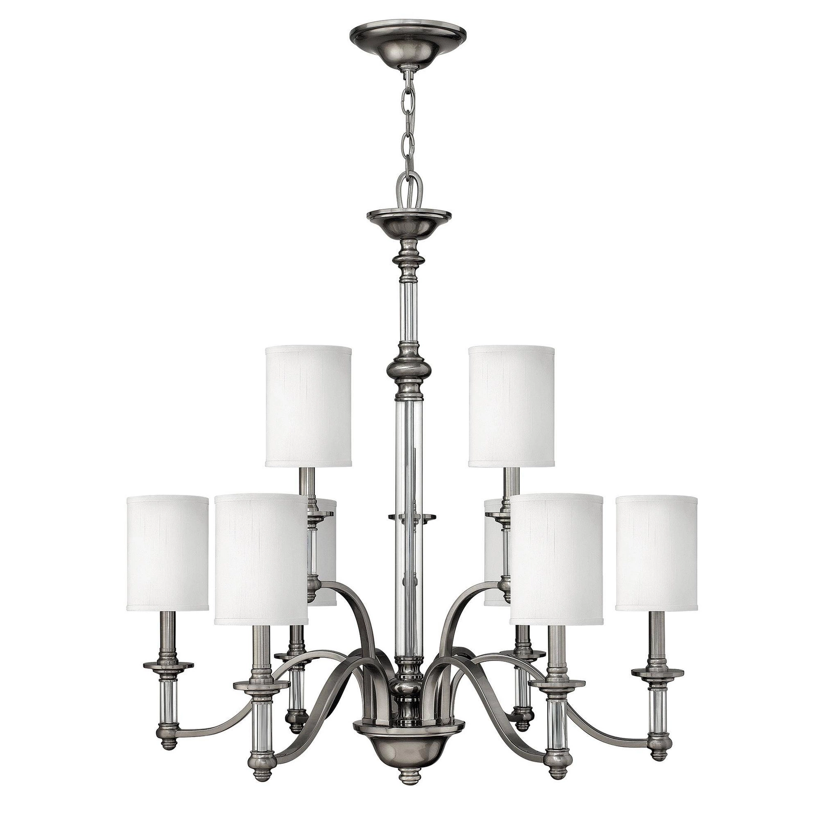 Żyrandol Sussex (HK-SUSSEX9) marki Elstead Lighting to elegancka i stylowa oprawa, która idealnie wpasuje się w każde wnętrze. Jego unikalny design łączy w sobie elementy retro oraz rustykalne, co sprawia, że staje się on doskonałym dodatkiem do tradycyjnych oraz nowoczesnych aranżacji. Wykonany z najwyższej jakości materiałów, takich jak stal, tkanina oraz szkło, żyrandol sufitowy Sussex zachwyca swoim wykończeniem i dbałością o detale.