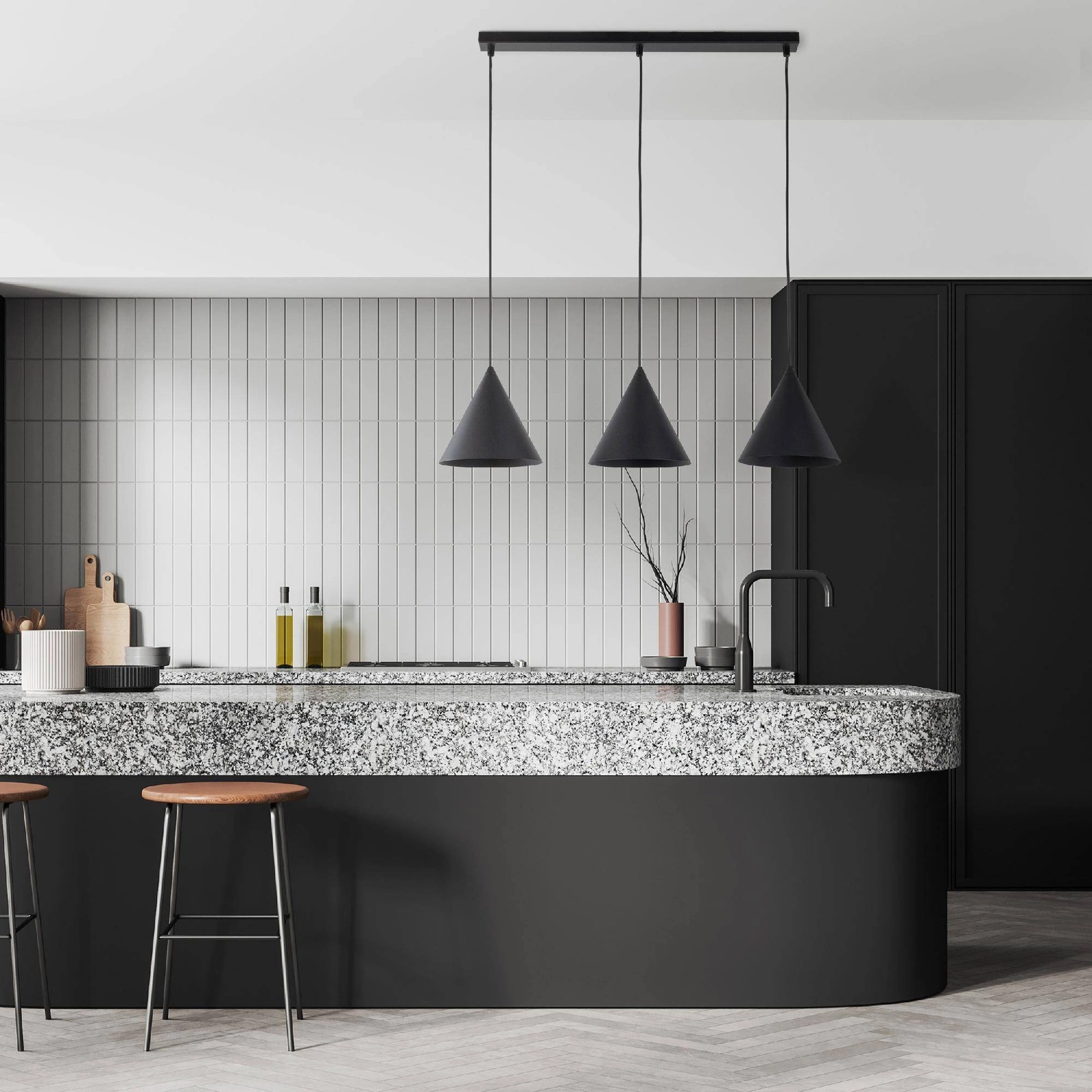 CONO BLACK LAMPA WISZĄCA 3 L LISTWA od marki TK Lighting to elegancki i nowoczesny element oświetlenia, który z pewnością wpasuje się w wiele stylów wnętrz. Dzięki swoim monochromatycznym kolorom, głównie czarny, lampa ta stanie się nie tylko źródłem światła, ale także atrakcyjną dekoracją. Produkty TK Lighting słyną z wysokiej jakości materiałów oraz przemyślanego designu, co czyni je niezwykle popularnym wyborem wśród klientów poszukujących lamp wiszących.
