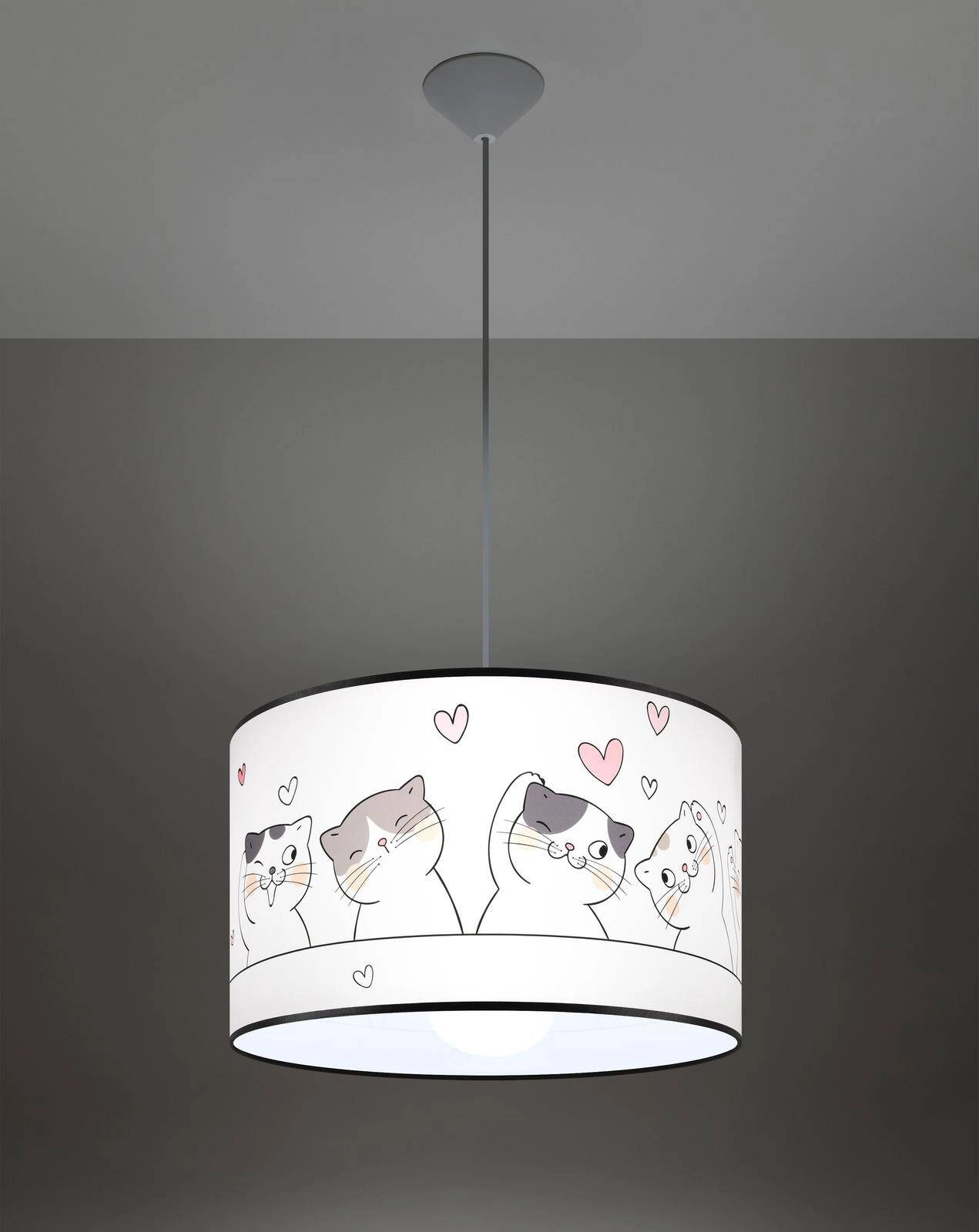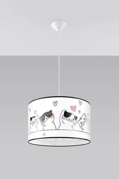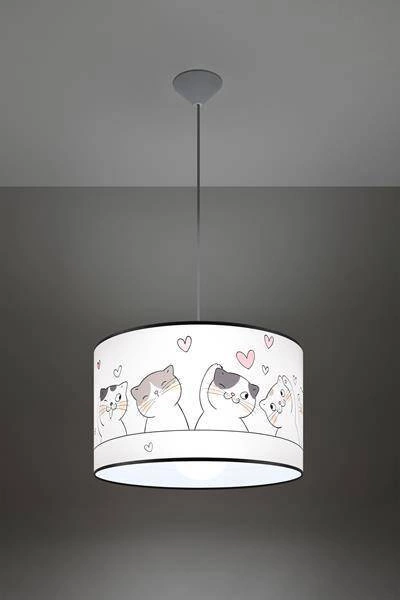 Lampa wisząca do pokoju dziecka bajkowy wzór CAT 40 (SL.1419) od marki Sollux Lighting to wyjątkowy element oświetleniowy, który doskonale wpisuje się w aranżację każdego dziecięcego wnętrza. Dzięki swojej bajkowej stylistyce, łączy w sobie funkcjonalność oraz estetykę, tworząc niepowtarzalny klimat w pokoju małego użytkownika. Ta lampa wisząca z pewnością zachwyci każdego malucha i wprowadzi do jego przestrzeni element magii i radości.