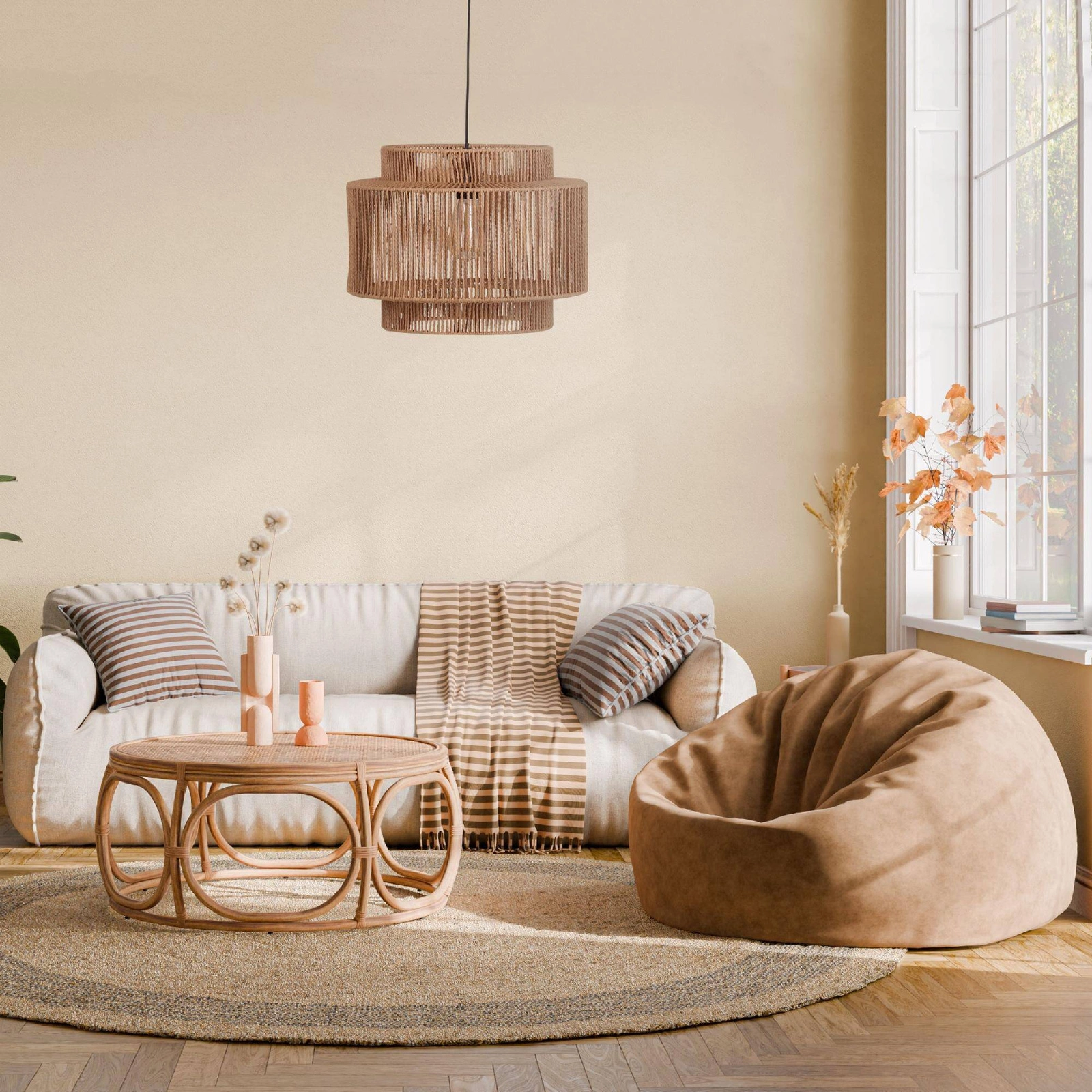 Wykonana z wysokiej jakości papieru, lampa wisząca Boho jest nie tylko piękna, ale także ekologiczna. Styl Boho, prowansalski oraz Japandi sprawia, że lampa doskonale wpasuje się w różnorodne aranżacje wnętrz, od rustykalnych po nowoczesne. Naturalny kolor i minimalistyczny design sprawiają, że ta lampa jest uniwersalnym wyborem, który można łatwo dopasować do wielu stylów dekoracyjnych.