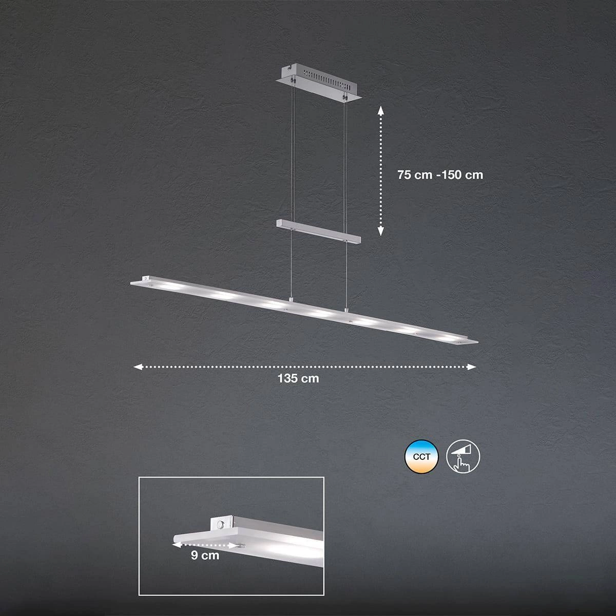Stopień ochrony IP20 wystarcza do użytku wewnętrznego, co czyni lampę wiszącą Largo idealnym wyborem do użycia w salonie, jadalni czy nawet w kuchni. Jej nowoczesny wygląd sprawia, że bez trudu stanie się centralnym elementem oświetlenia, dodając przy tym wszelkim aranżacjom elegancji. Można ją zawiesić nad stołem, co idealnie sprawdzi się zarówno podczas codziennych posiłków, jak i wyjątkowych okazji.