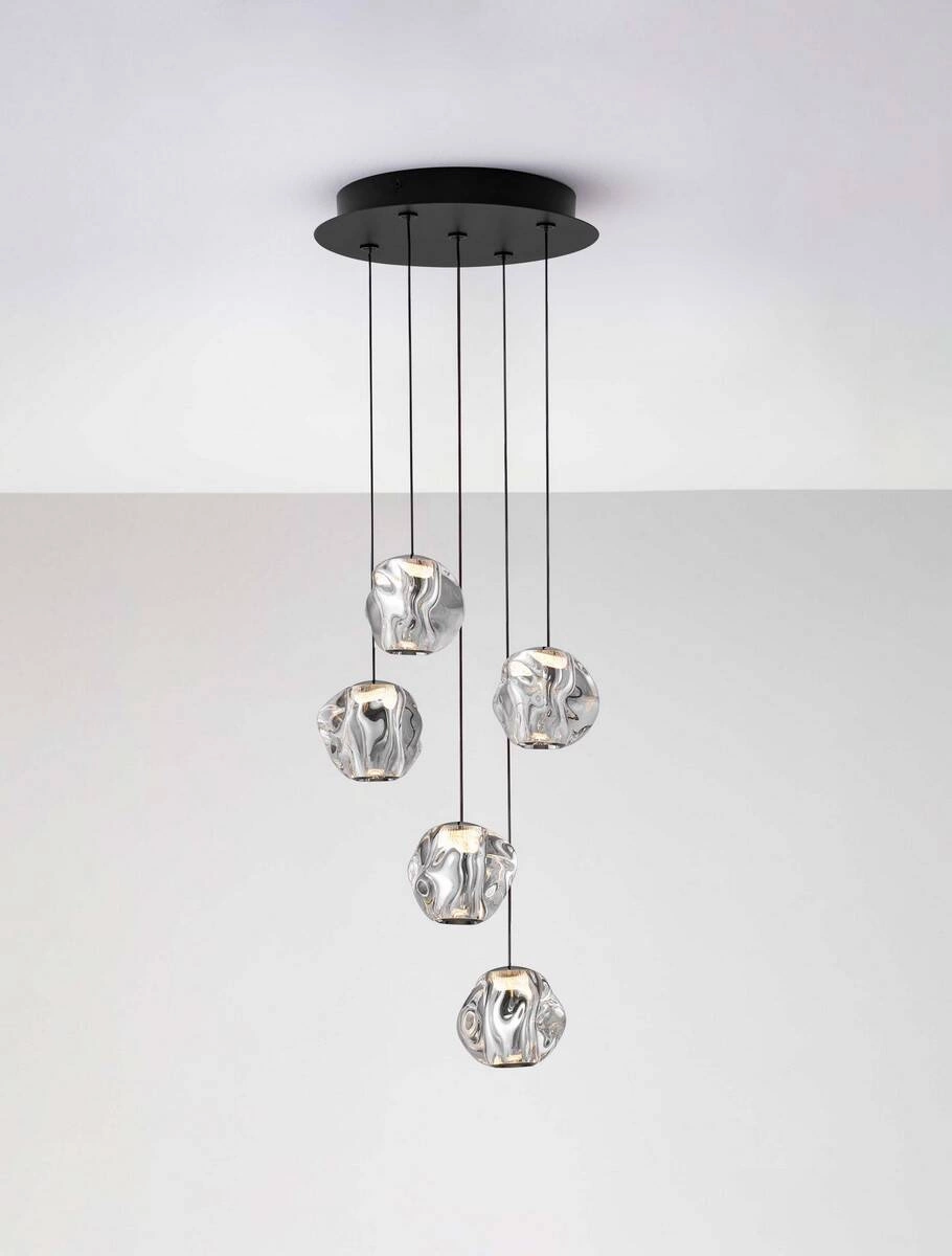 Dekoracyjne lampy , które wiszą w kaskadowy, nieregularny sposób. Sprawdzają się szczególnie nad stołem w salonie lub jadalni tworząc dodatkową oprawę. Duże lampy kaskadowe dobrze wyglądają w pomieszczeniach o wysokich sufitach.