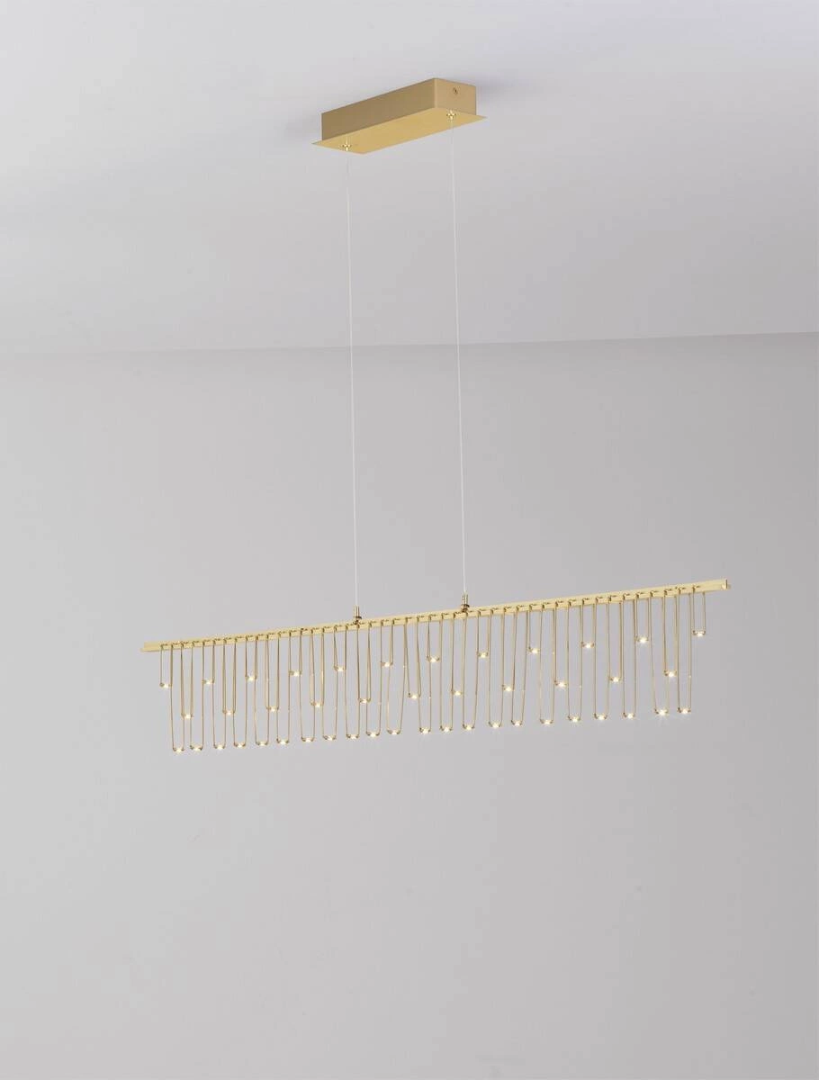 Lampa wisząca wewnętrzna HUARAZ (LE44447) od marki Luces Exclusivas to idealne rozwiązanie dla osób poszukujących lamp wiszących o unikalnym designie oraz funkcjonalności. Produkt ten charakteryzuje się eleganckim złotym kolorem, który doskonale wpasuje się w różnorodne aranżacje wnętrz. Zastosowanie lampy wiszącej w stylu glamour lub hampton doda wnętrzu szyku i elegancji, a jednocześnie spełni swoją rolę oświetleniową.