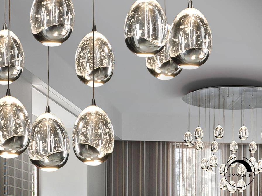 Dekoracyjne lampy , które wiszą w kaskadowy, nieregularny sposób. Sprawdzają się szczególnie nad stołem w salonie lub jadalni tworząc dodatkową oprawę. Duże lampy kaskadowe dobrze wyglądają w pomieszczeniach o wysokich sufitach.