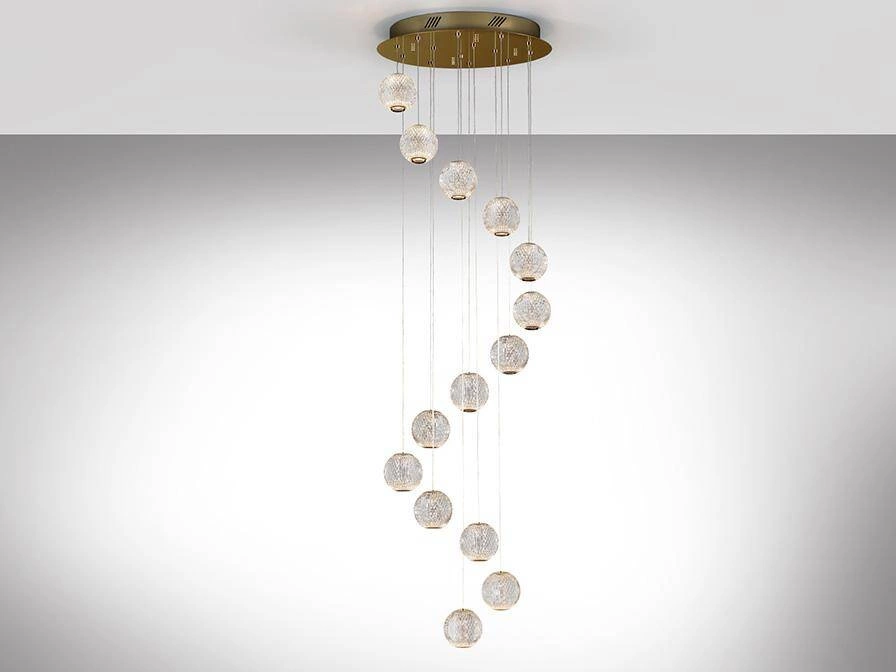 Dekoracyjne lampy , które wiszą w kaskadowy, nieregularny sposób. Sprawdzają się szczególnie nad stołem w salonie lub jadalni tworząc dodatkową oprawę. Duże lampy kaskadowe dobrze wyglądają w pomieszczeniach o wysokich sufitach.