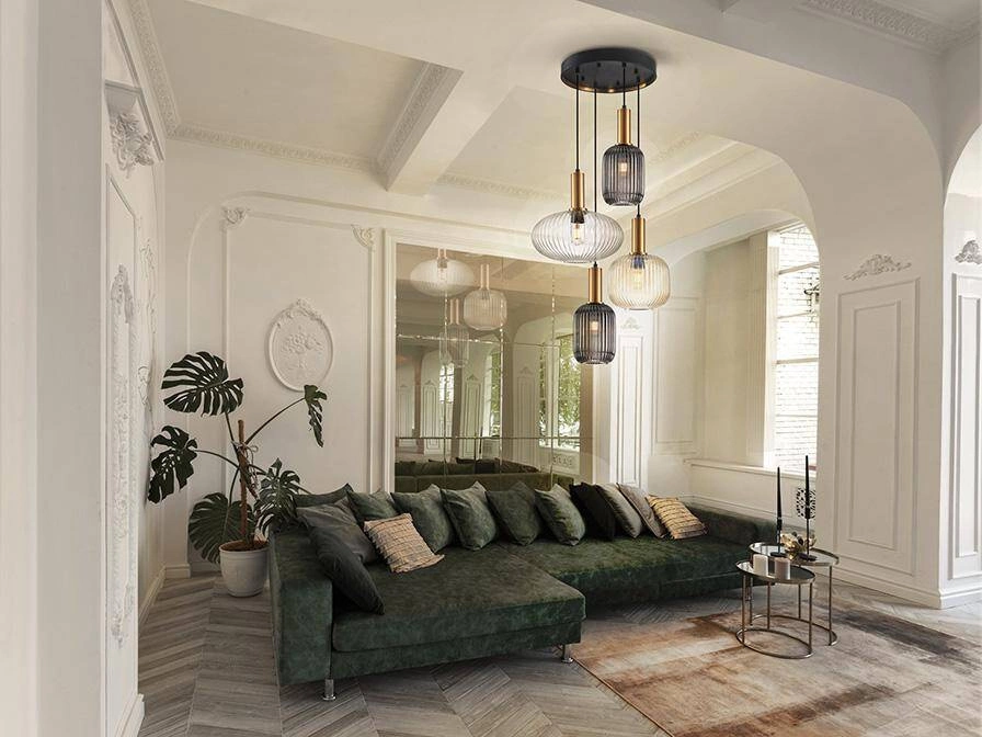 Dekoracyjne lampy , które wiszą w kaskadowy, nieregularny sposób. Sprawdzają się szczególnie nad stołem w salonie lub jadalni tworząc dodatkową oprawę. Duże lampy kaskadowe dobrze wyglądają w pomieszczeniach o wysokich sufitach.