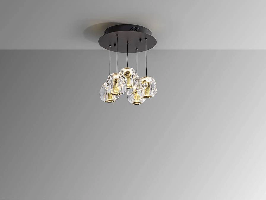 Dekoracyjne lampy , które wiszą w kaskadowy, nieregularny sposób. Sprawdzają się szczególnie nad stołem w salonie lub jadalni tworząc dodatkową oprawę. Duże lampy kaskadowe dobrze wyglądają w pomieszczeniach o wysokich sufitach.