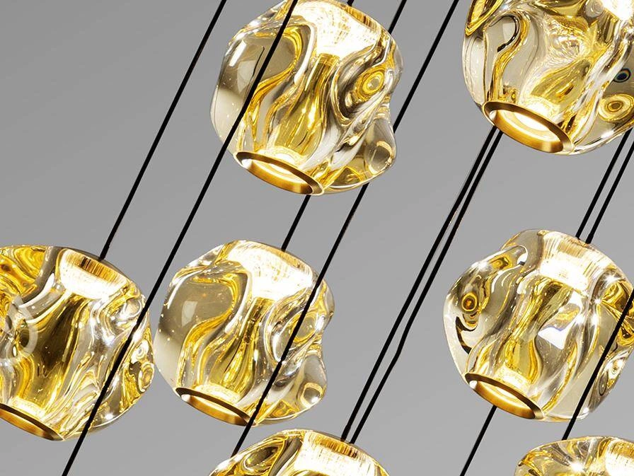 Dekoracyjne lampy , które wiszą w kaskadowy, nieregularny sposób. Sprawdzają się szczególnie nad stołem w salonie lub jadalni tworząc dodatkową oprawę. Duże lampy kaskadowe dobrze wyglądają w pomieszczeniach o wysokich sufitach.