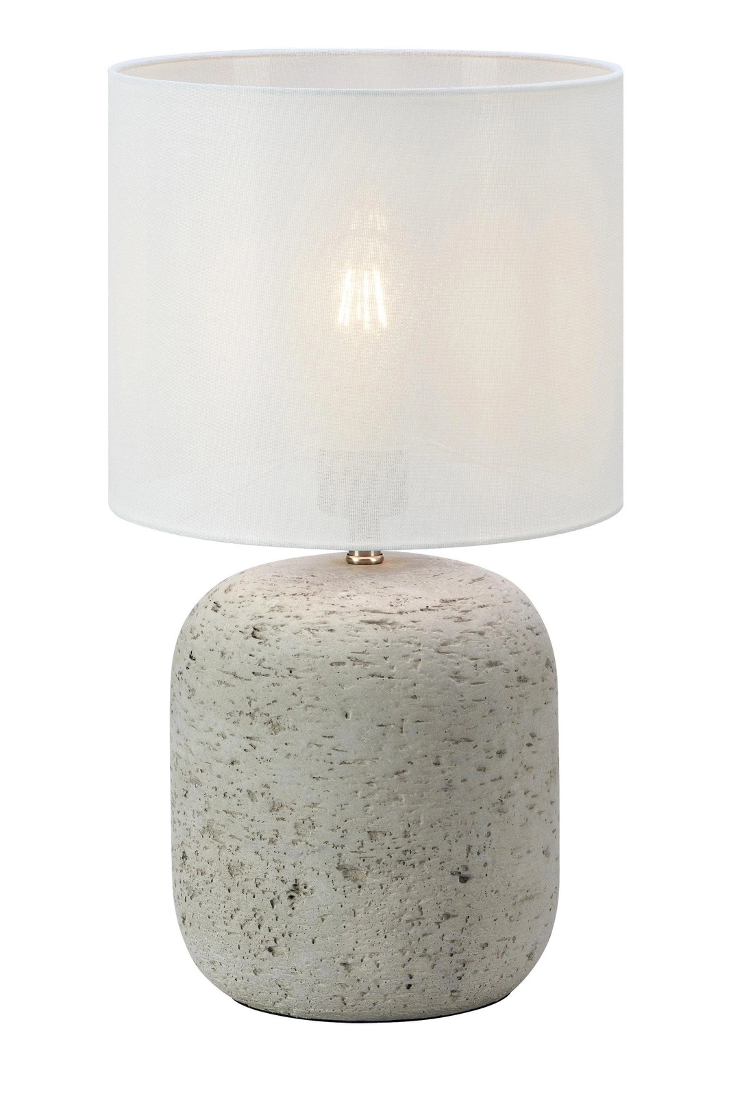 Lampa wykonana jest z betonu i tkaniny, co nadaje jej wyjątkowego charakteru. Betonowy podstawa zapewnia stabilność, a abażur w kolorze offwhite rozprasza światło, tworząc przyjemną i ciepłą aurę. Trzonek E27 daje możliwość zastosowania różnych źródeł światła, jednak lampa nie zawiera ich w komplecie, co pozwala na indywidualne dostosowanie do własnych potrzeb.