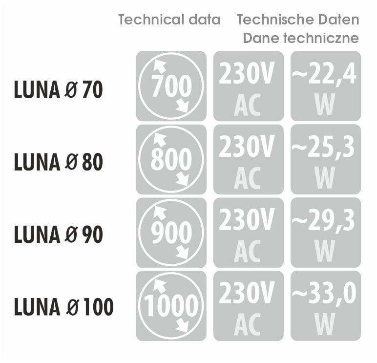 Bezpieczeństwo użytkowania lustra LUNA zapewnia wysoki stopień ochrony IP20, co czyni je odpowiednim do użytku w suchych wnętrzach. Jego minimalistyczny design sprawia, że doskonale komponuje się z różnorodnymi stylami aranżacyjnymi, od klasycznych po nowoczesne. Lustro LUNA może być z powodzeniem wykorzystane w różnych pomieszczeniach, co czyni je bardzo uniwersalnym rozwiązaniem.