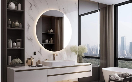 Lustro LUNA - MCJ to produkt, który łączy w sobie nowoczesny design oraz funkcjonalność, idealnie wpisując się w każde wnętrze. Jego średnica wynosząca 100 cm sprawia, że stanie się ono efektownym punktem centralnym w Twojej łazience, przedpokoju czy sypialni. To okragłe lustro nie tylko optycznie powiększy przestrzeń, ale także doda jej elegancji oraz nowoczesnego charakteru.