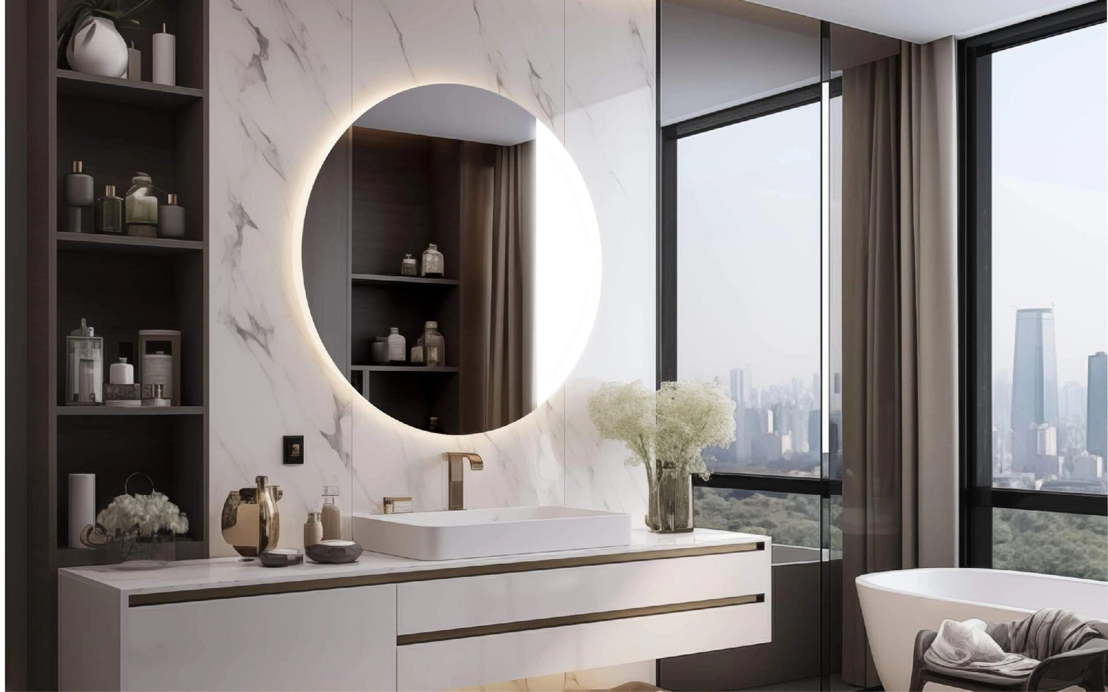 Wykonane z wysokiej jakości szkła FLOAT, lustro LUNA gwarantuje doskonałą przezroczystość i trwałość. Jego neutralna barwa światła zapewnia optymalne oświetlenie, co jest niezwykle istotne przy codziennej pielęgnacji oraz makijażu. Dzięki zintegrowanemu trzonkowi LED nie musisz martwić się o dodatkowe źródło światła — lustro jest gotowe do użycia zaraz po zamontowaniu.
