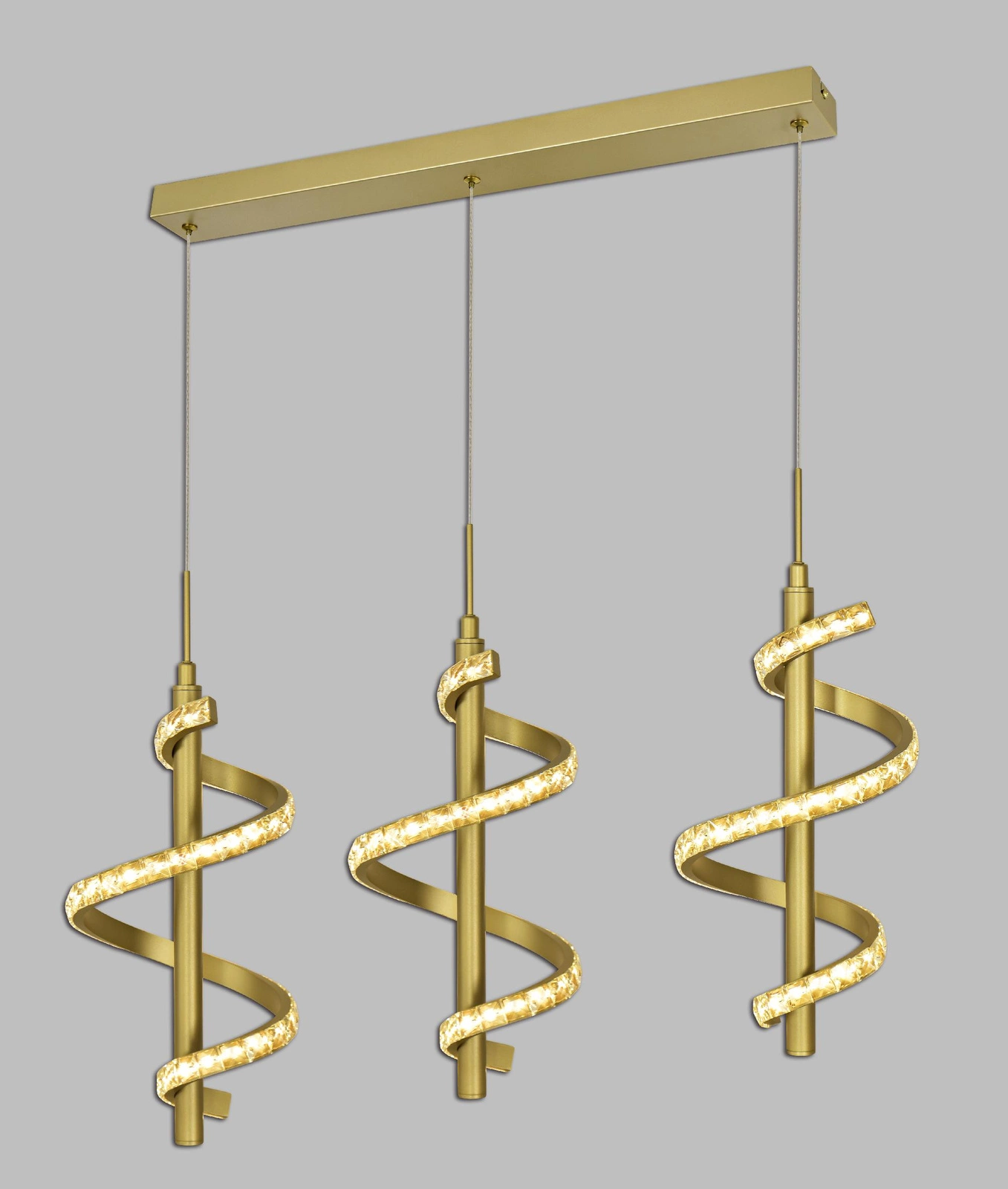 Aviano Lighting z dumą przedstawia spiralną lampę wiszącą potrójną CLARET (kod produktu: 7209-0315), która doskonale łączy elegancję z funkcjonalnością. Ten wyjątkowy model został zaprojektowany z myślą o wnętrzach, w których styl glamour spotyka się z nowoczesnością. Dzięki dekoracyjnym kryształom, lampa dodaje blasku i wyrafinowania każdemu pomieszczeniu, stając się centralnym punktem aranżacji. Idealnie sprawdzi się w jadalni oraz kuchni, gdzie może być zawieszona nad stołem lub wyspą, tworząc przytulną atmosferę do wspólnych posiłków.