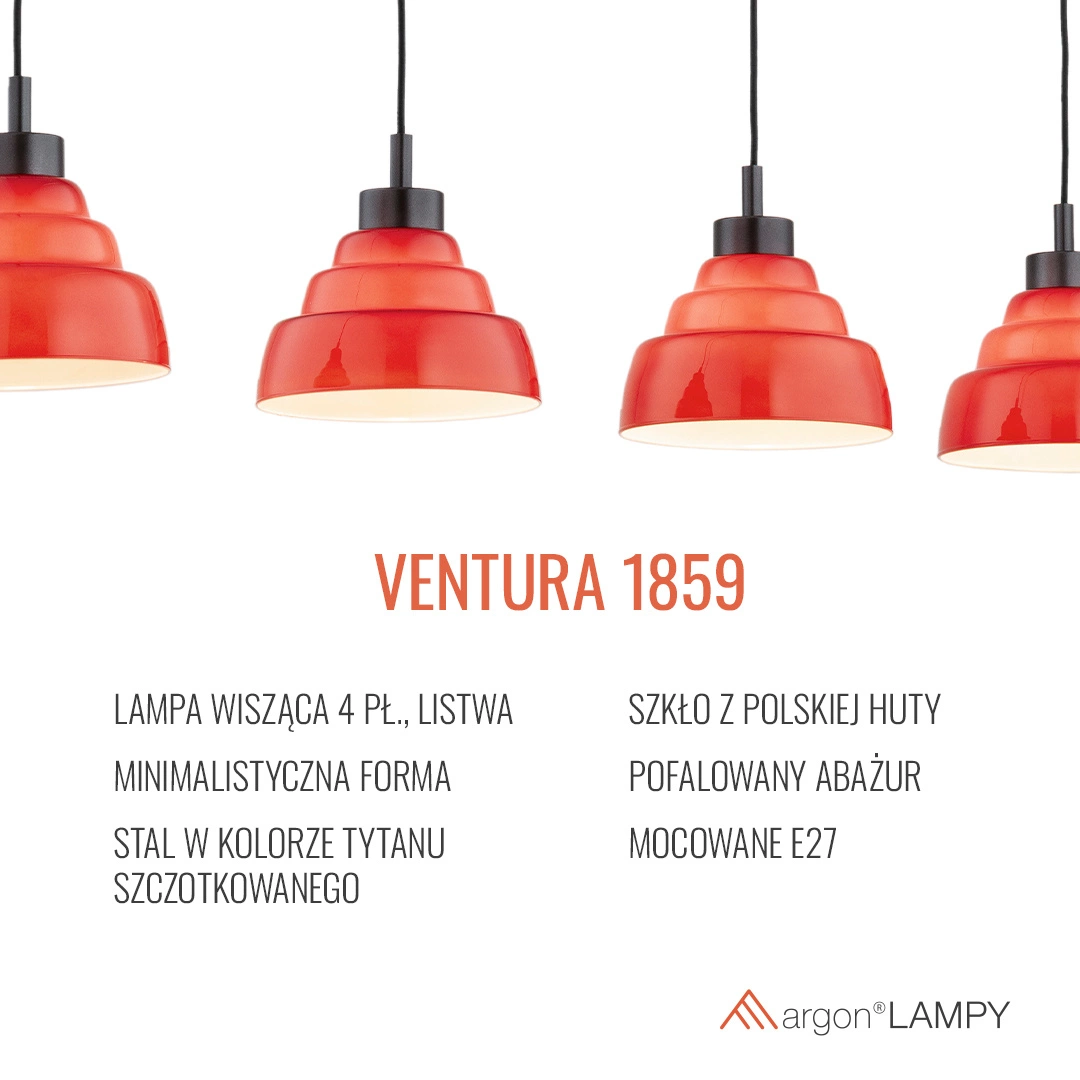 Nasza lampa wisząca ma stopień ochrony IP20, co oznacza, że jest przeznaczona do użytku wewnętrznego. Jej intensywny czerwony kolor przyciąga wzrok, nadając pomieszczeniom wyjątkowego charakteru. Idealnie wpisuje się w nowoczesne aranżacje oraz klasyczne wnętrza, będąc niezwykle wszechstronnym rozwiązaniem. Lampy wiszące VENTURA to doskonały wybór dla tych, którzy cenią sobie harmonię i elegancję w wystroju wnętrz.