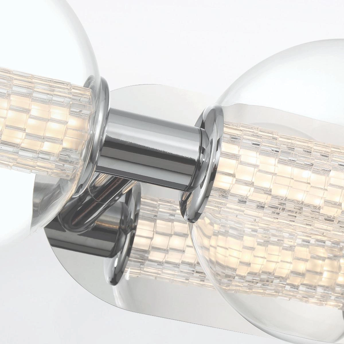 Kinkiet Atomo to prawdziwa perełka, która zachwyca przezroczystym kloszem. W jego wnętrzu znajdują się fasetowane kryształowe koła, które efektownie załamują światło, tworząc niepowtarzalne wzory i klimatyczną atmosferę. Z maksymalną mocą 13 W oraz świetlnością wynoszącą 1160 lumenów, kinkiet zapewnia odpowiednie oświetlenie, które jest zarówno funkcjonalne, jak i dekoracyjne.