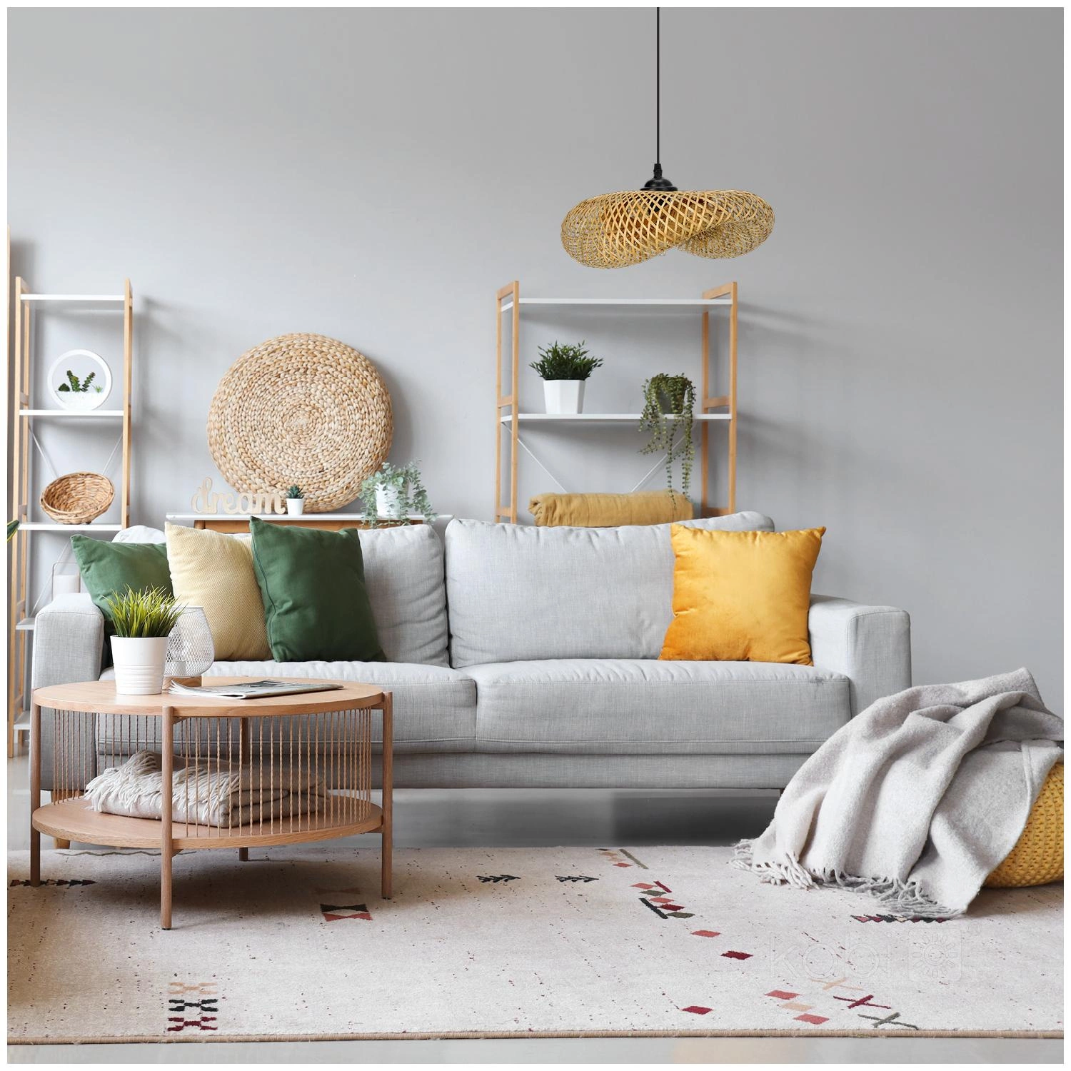 Styl Boho oraz Japandi łączą w sobie naturalne materiały i prostotę form, co czyni lampę niezwykle wszechstronną. Dzięki temu, lampa doskonale wpisuje się w różne aranżacje - od rustykalnych po nowoczesne. Idealnie podkreśli i wzbogaci wnętrza, które bazują na naturze i minimalistycznych rozwiązaniach.