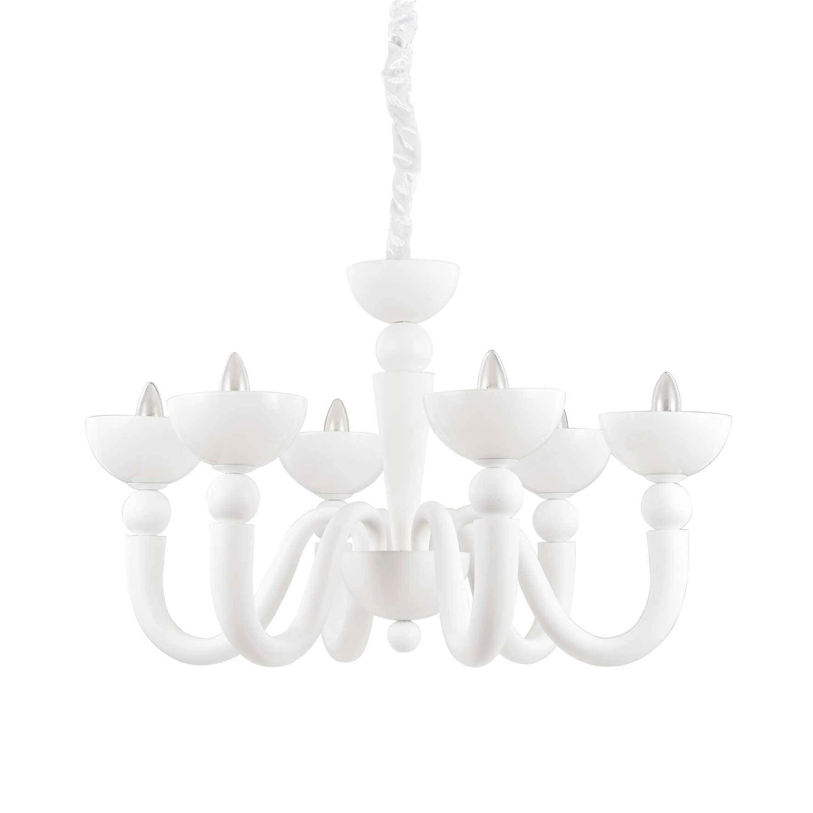 Lampa wisząca BON BON SP6 (093994) marki Ideal Lux to doskonały wybór dla osób poszukujących efektownego i praktycznego rozwiązania oświetleniowego. Ten żyrandol wyróżnia się eleganckim, modnym designem, który wpisuje się w różnorodne style aranżacyjne, w tym retro, Hampton oraz Art Deco. Dzięki swojemu unikalnemu wyglądowi idealnie nadaje się do pomieszczeń takich jak salon, sypialnia, biuro czy jadalnia. Jej klasyczna forma doskonale komponuje się także w nowoczesnych wnętrzach, co czyni ją niezwykle wszechstronną.