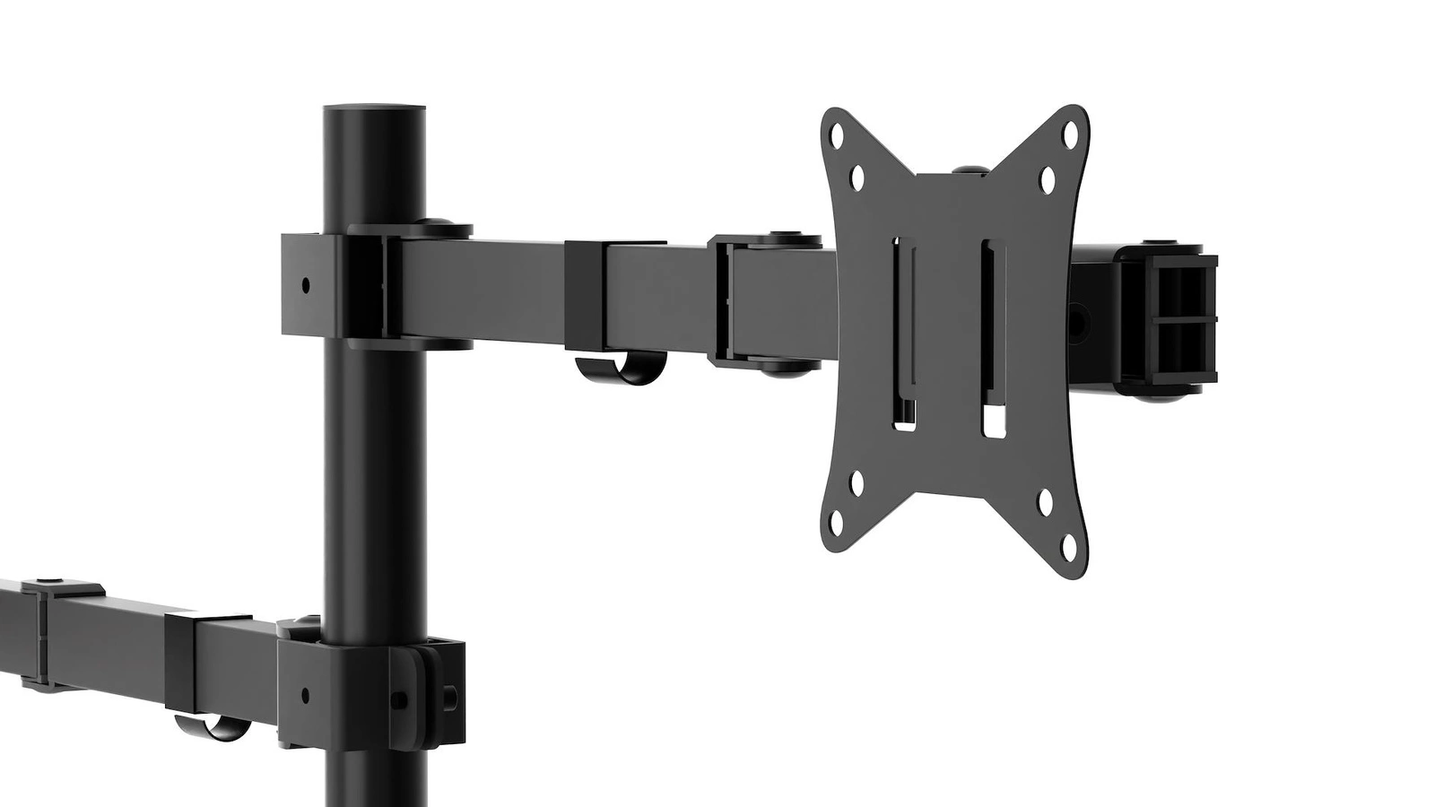 Uchwyt jest zgodny z systemem Vesa 75x75 mm oraz 100x100 mm, co sprawia, że jego montaż jest niezwykle prosty. Możliwość regulacji w każdej płaszczyźnie - wysokości, kąta nachylenia, orientacji poziomej lub pionowej oraz obrotu - pozwala na idealne dopasowanie do indywidualnych potrzeb użytkownika. Dodatkowo, uchwyt umożliwia montaż na bardzo cienkich blatach, już od 10 mm, co czyni go wszechstronnym rozwiązaniem.