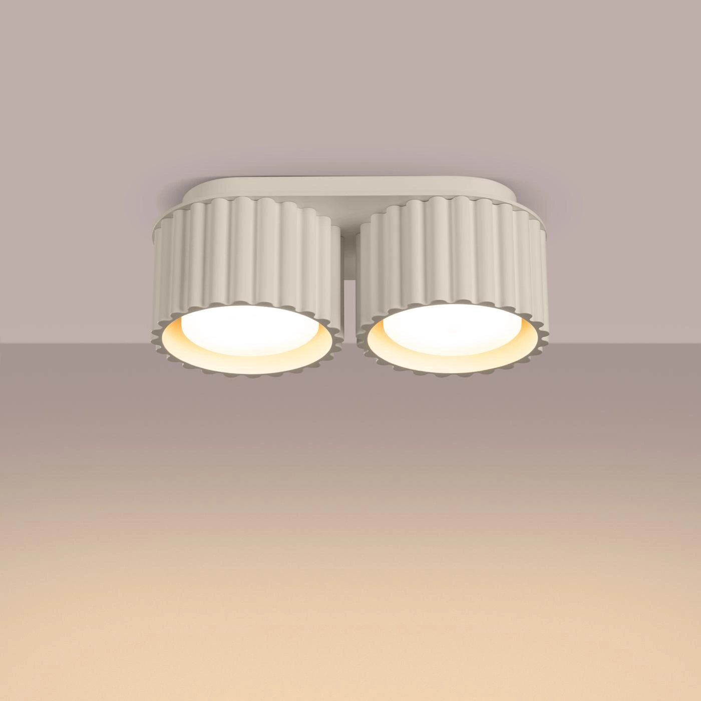 Lampa charakteryzuje się stopniem ochrony IP20, co oznacza, że jest idealna do zastosowań wewnętrznych. Ryflowana powierzchnia nie tylko dodaje uroku, ale także podkreśla nowoczesny charakter lampy. Maksymalna moc 10W na każde źródło światła pozwala na wykorzystanie odpowiednich żarówek, co wpływa na efekt końcowy oświetlenia. Dzięki funkcji świecenia w dół, plafon AURA 2 skutecznie doświetli wybrane miejsca, tworząc przytulną atmosferę w każdym pomieszczeniu.