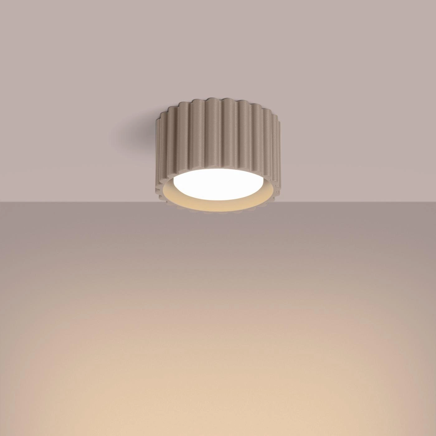 Plafon AURA 1 został zaprojektowany z myślą o komforcie użytkowania. Jego ryflowana powierzchnia oraz możliwość montażu żarówki typu GX53 (tzw. "pastylka") sprawiają, że lampa jest nie tylko funkcjonalna, ale również estetyczna. Maksymalna moc wynosząca 10W pozwala na efektywne oświetlenie przestrzeni, co czyni ten plafon wewnętrzny idealnym rozwiązaniem do różnych wnętrz. Lampa emituje światło w dół, co sprawia, że jest doskonała do oświetlania stołów w jadalniach, kawowych stref w salonach czy też korytarzy.
