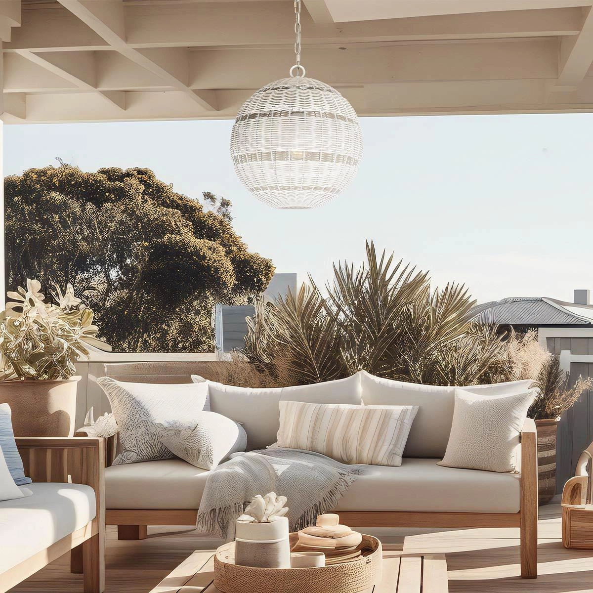 Regulacja wysokości podczas montażu zapewnia dodatkową wygodę i elastyczność w aranżacji przestrzeni. Lampa wisząca na łańcuchu może być zawieszona w dogodnej dla Ciebie wysokości, co umożliwia optymalne oświetlenie wybranej strefy na tarasie. Lampa Lindendale świetnie odnajduje się zarówno w stylu boho, jak i Japandi, dzięki czemu można ją z łatwością wkomponować w różnorodne aranżacje.