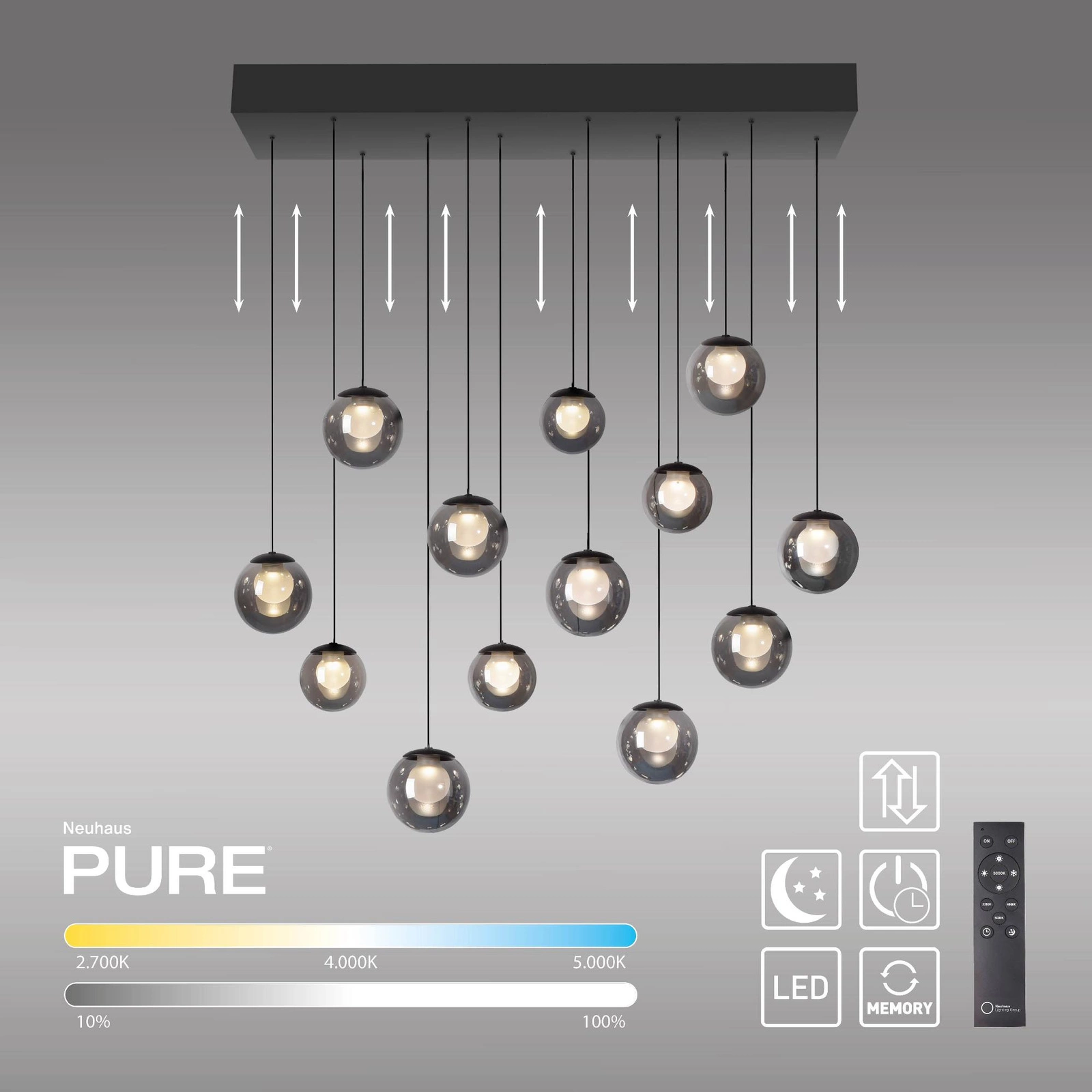 Wisząca lampa na pilota, z regulacją światła i wysokości PURE POPUP SZARA (2590-15) - Paul Neuhaus