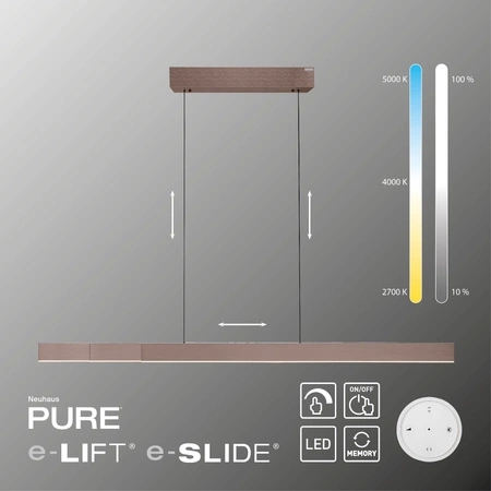 Lampa wisząca PURE-MOTO-RISE BRĄZOWA marki Paul Neuhaus to nie tylko estetyka, ale i funkcjonalność. Wbudowane źródło światła LED o maksymalnej mocy 13 W oraz opcja ściemniania sprawiają, że oświetlenie można w sposób łatwy dostosować do indywidualnych preferencji. Sterowanie pilotem, dołączonym do zestawu, sprawia, że możesz w każdej chwili zmienić ustawienia lampy bez wstawania z miejsca.