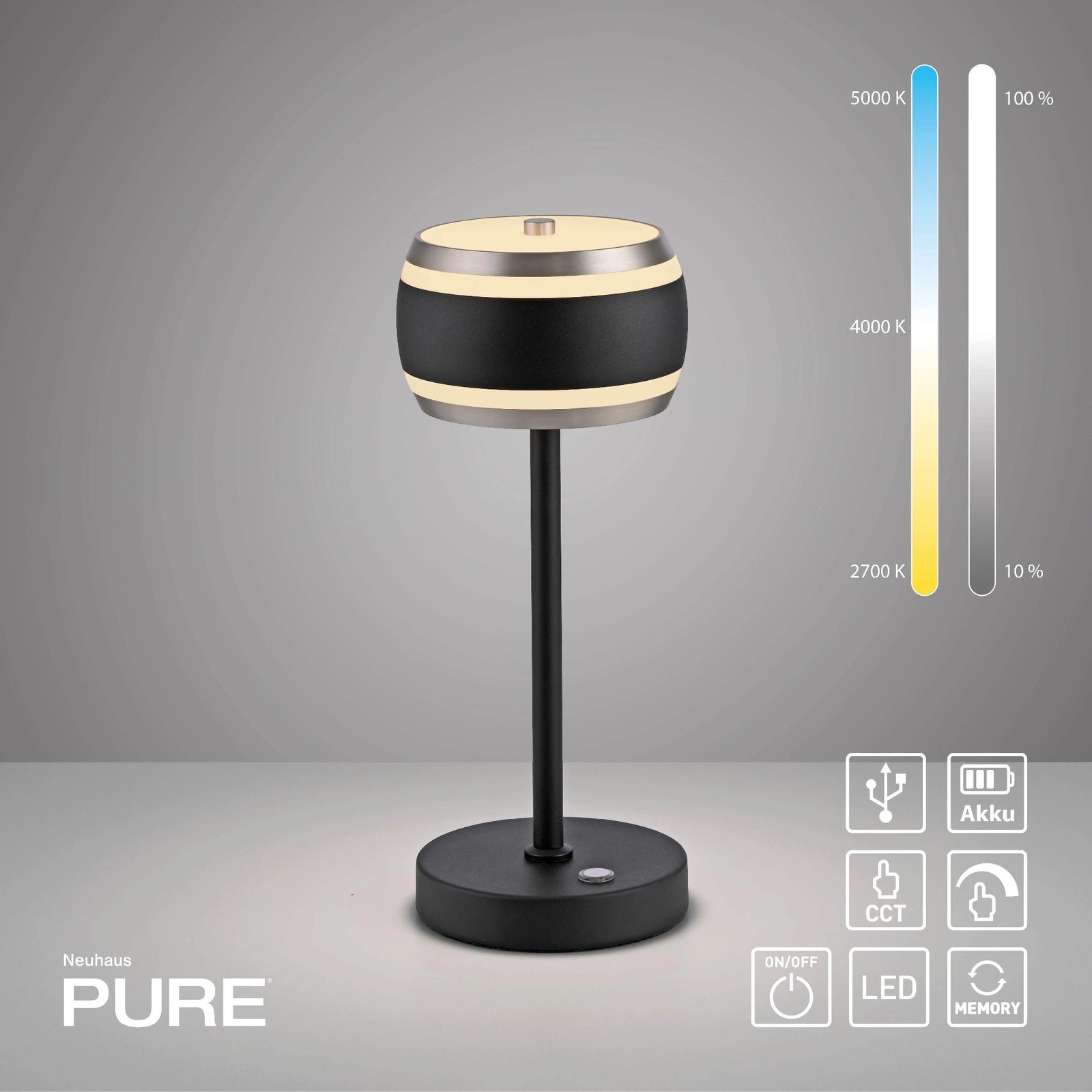Podsumowując, przenośna, ładowana lampa stołowa PURE FALLING RINGS CZARNA (4503-18) od Paul Neuhaus to doskonały wybór dla osób, które cenią sobie funkcjonalność, oszczędność energii oraz nowoczesny design. Dzięki jej eleganckiemu wyglądowi i wszechstronnym możliwościom zastosowania, z pewnością wzbogaci każde wnętrze, a jej użytkowanie będzie czystą przyjemnością.