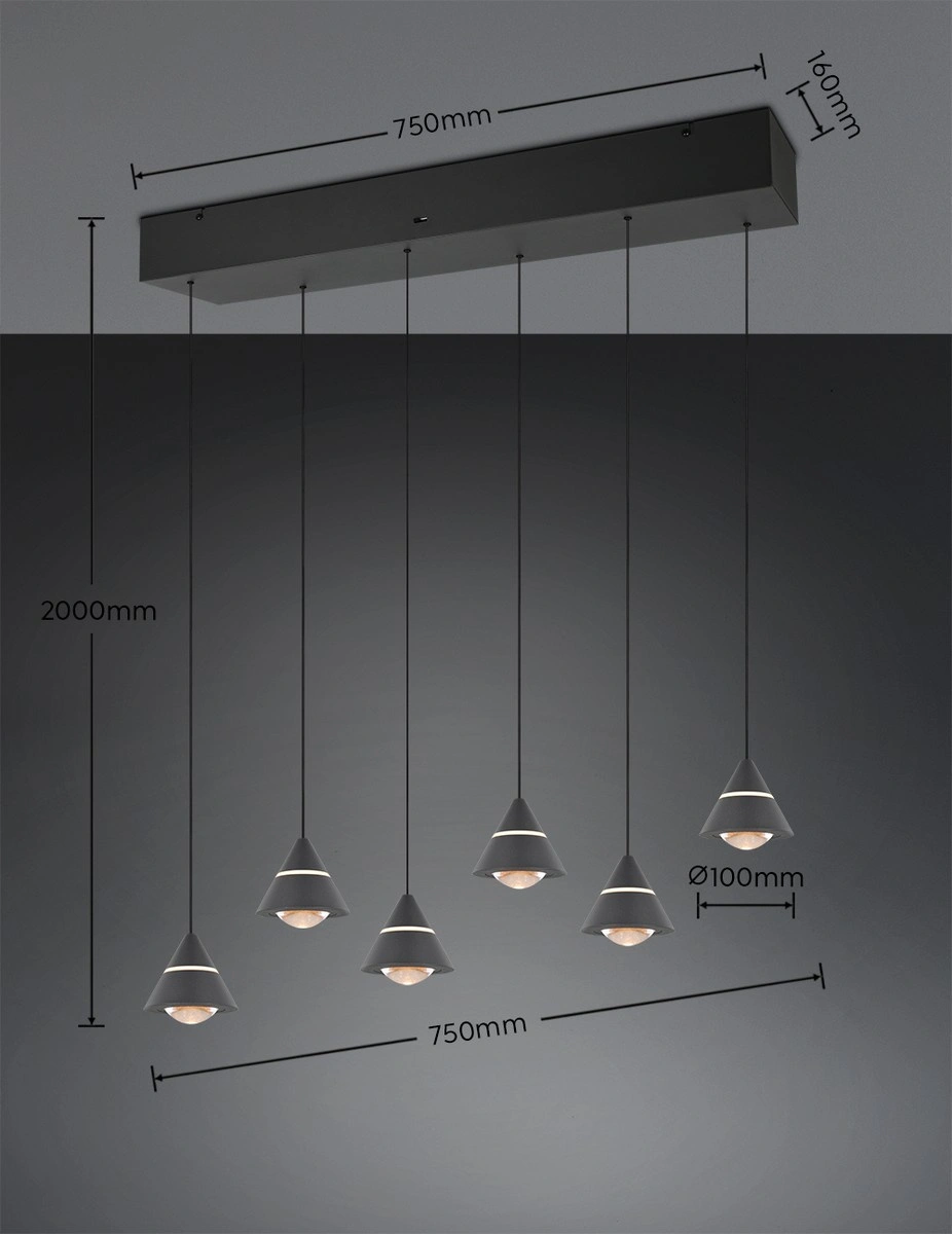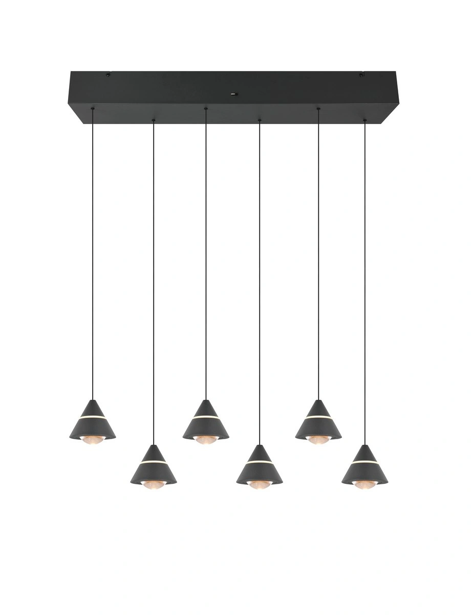 Kaskadowa konstrukcja lampy wiszącej ROMEO przyciąga wzrok i nadaje stylu każdemu pomieszczeniu. Wykonana z wysokiej jakości metalu w eleganckim, czarnym kolorze, lampa łączy w sobie nowoczesność z klasą. Dzięki szóstce źródeł światła o zintegrowanym trzonku LED, każda przestrzeń zyska przyjemne, ciepłe światło. Temperatura barwy, wynosząca od 2300 do 4000 K, umożliwia dostosowanie nastroju w zależności od potrzeb i sytuacji.
