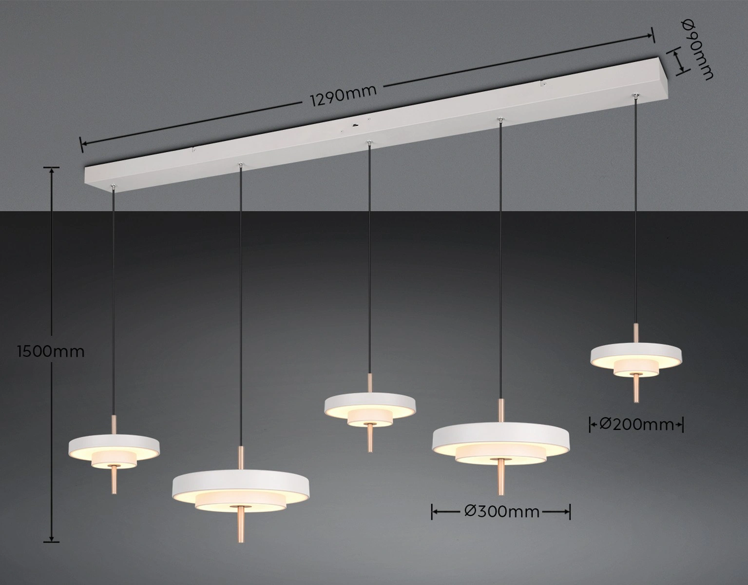 Produkcja lampy wiszącej KEATON z zastosowaniem metalu gwarantuje wysoką jakość oraz długowieczność produktu. Dzięki zastosowaniu zintegrowanego źródła światła LED o maksymalnej mocy 50 W, otrzymujesz nie tylko oszczędność energii, ale również niezwykle wydajne oświetlenie. Lampa zapewnia różne temperatury barwy światła, co pozwala dostosować jego intensywność do Twoich indywidualnych potrzeb i preferencji – od ciepłego, przytulnego światła o temperaturze 2300 K, przez neutralne 3000 K, aż po chłodne 4000 K.
