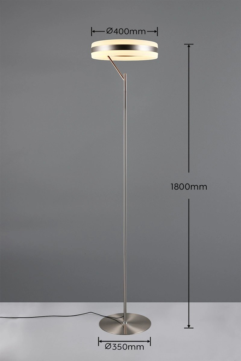 Elegancka lampa podłogowa DIOS (431410107) od renomowanej marki Trio to doskonały wybór dla osób pragnących dodać swojemu wnętrzu wyjątkowego charakteru. Stworzona z dbałością o detale, ta lampa łączy w sobie nowoczesny styl z funkcjonalnością. Idealnie wpasuje się zarówno w salon, sypialnię, jak i przedpokój. Jej elegancki, srebrny kolor sprawia, że bez trudu wkomponuje się w różnorodne aranżacje wnętrzarskie.