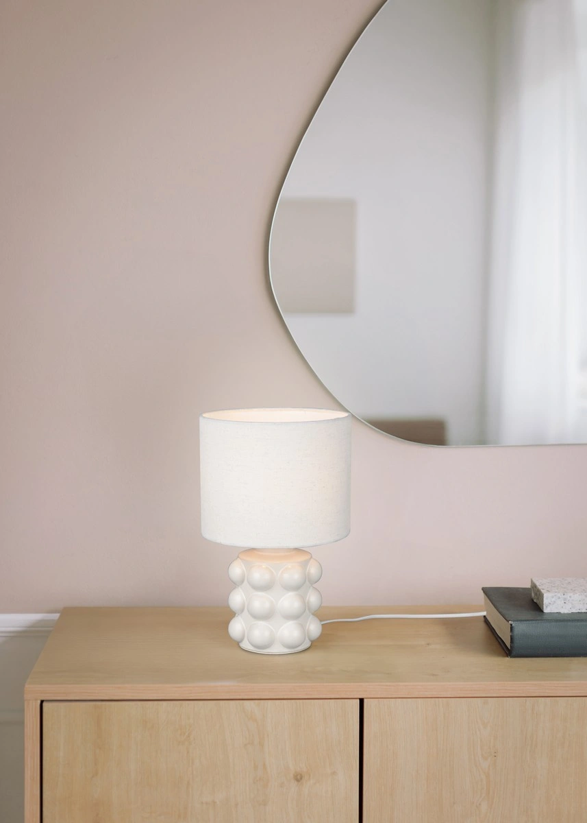 Lampa stołowa z abażurem KATE to wyjątkowy produkt marki RL, który doskonale łączy funkcjonalność z eleganckim designem. Model o kodzie R56481001 idealnie sprawdzi się w różnych wnętrzach, wprowadzając przyjemną atmosferę oraz subtelne oświetlenie. Dzięki prostemu, białemu wykończeniu, ta lampa stołowa wkomponuje się w każde pomieszczenie, od sypialni, przez salon, aż po gabinet.