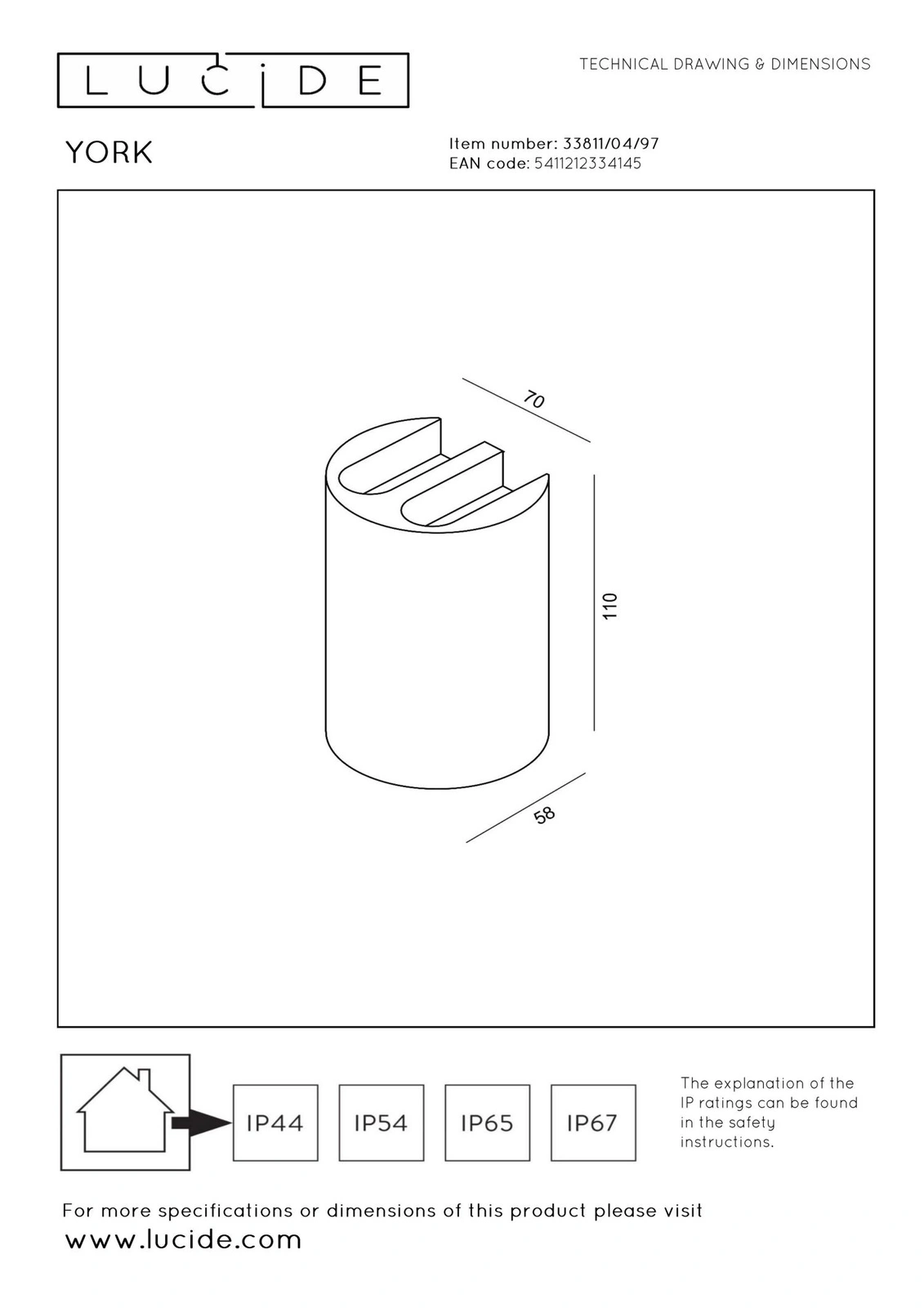 Stopień ochrony[IP]: Jest międzynarodowym standardem (IEC 60529) służącym do określania stopnia ochrony lub szczelności obudowy urządzenia elektrycznego przed ingerencją ciał stałych, wody i pyłu. Klasyfikacja IP jest zgodna z normą EN 60529. Im wyższe IP (od 44) tym lampa jest bardziej odporna na wilgoć , na kontakt z wodą.