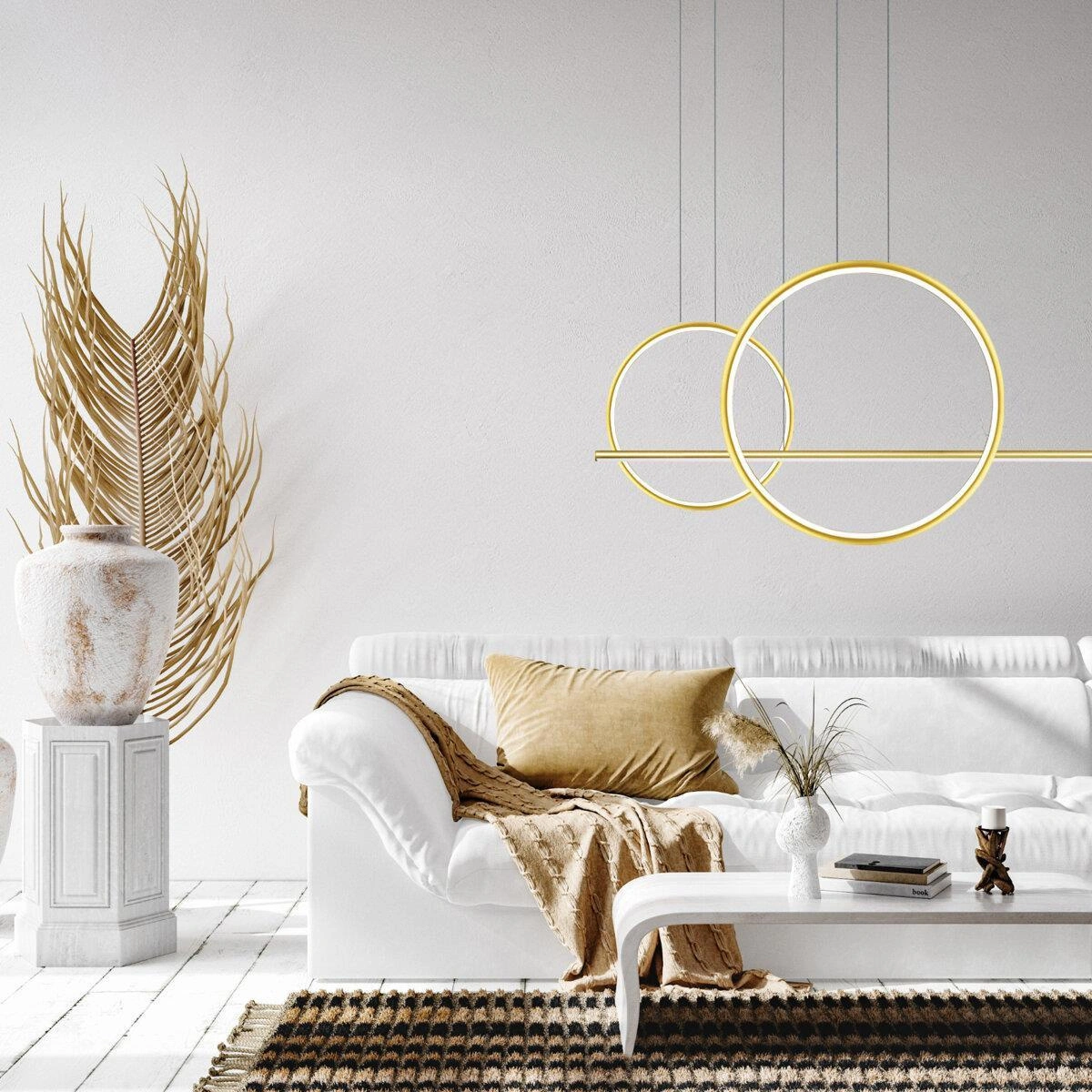 Ta nowoczesna lampa to połączenie wyrafinowanego designu i funkcjonalności, która idealnie dopełni każde wnętrze. Dwa geometryczne okręgi oraz pionowy element tworzą efekt przestrzenności, przyciągając wzrok i dodając wnętrzu charakteru.