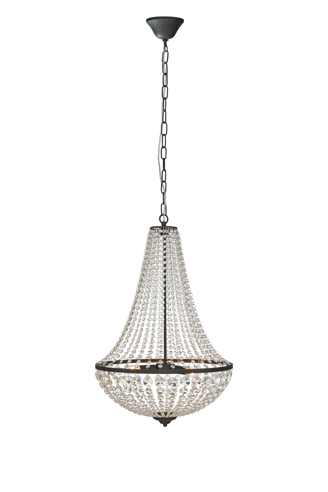Żyrandol GRÄNSÖ jest wyposażony w trzy źródła światła, co zapewnia wystarczające oświetlenie nawet w większych przestrzeniach. Zastosowany trzonek E14 umożliwia użycie różnych żarówek, co daje możliwość dostosowania intensywności światła do indywidualnych potrzeb. Maksymalna moc wynosząca 40W zapewnia wystarczającą jasność, a napięcie zasilania 230V sprawia, że montaż jest niezwykle prosty.