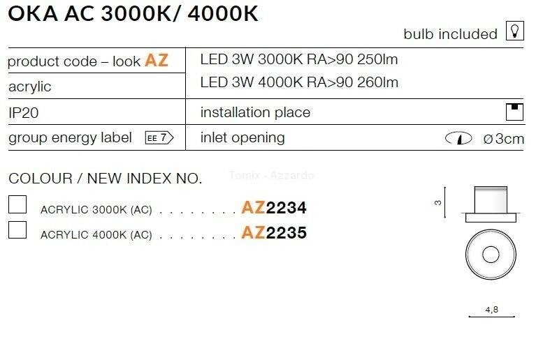 Podsumowując, lampa wpuszczana OKA AC 3000K acryl (AZ2234) to połączenie nowoczesności, funkcjonalności i estetyki. Dzięki swojej uniwersalności, z powodzeniem wkomponuje się w wystrój każdego domu lub biura, jednocześnie zachwycając swoim designem oraz jakością wykonania. Lampy wpuszczane do przedpokoju, lampy wpuszczane do korytarza czy lampy wpuszczane sypialniane nadają wnętrzu charakteru i stylu, a ich montaż z pewnością nie sprawi problemów. Wybierając model od Azzardo, inwestujesz w eleganckie i funkcjonalne rozwiązania oświetleniowe.
