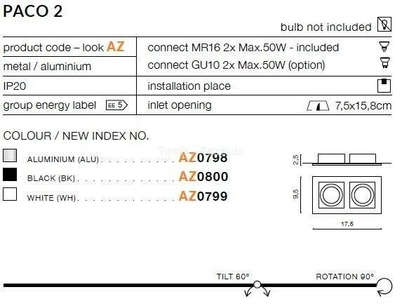 Model PACO 2 wyposażony jest w dwa źródła światła, co umożliwia dostosowanie intensywności oświetlenia do indywidualnych potrzeb. Dzięki zastosowaniu trzonków GU10 oraz GU5.3/MR16, lampa pozwala na łatwą wymianę żarówek, co jest niezwykle praktyczne. Zgodność z napięciem zasilania 12/230 V sprawia, że lampy wpuszczane PACO 2 są wszechstronne i łatwe w montażu w różnych warunkach.