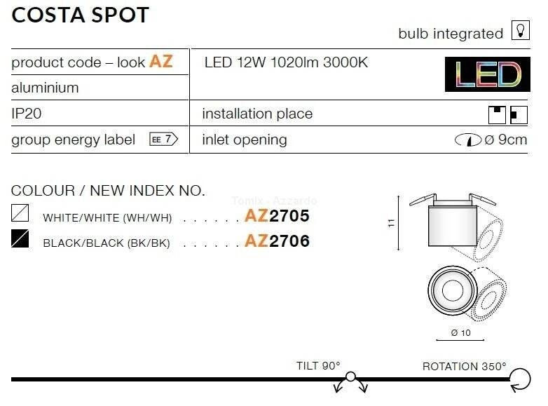 Podsumowując, lampa COSTA SPOT black/black (AZ2706) to nie tylko ciekawe podejście do tematu oświetlenia, ale również doskonała propozycja dla klientów poszukujących lamp sufitowych metalowych, lamp sufitowych czarnych oraz lamp sufitowych LED. Stworzona z materiałów najwyższej jakości, zachwyca elegancją i prostotą, a jednocześnie zyskuje uznanie wśród miłośników nowoczesnych wnętrz. Wybierz lampę COSTA i ciesz się eleganckim oraz funkcjonalnym oświetleniem w swoim domu.