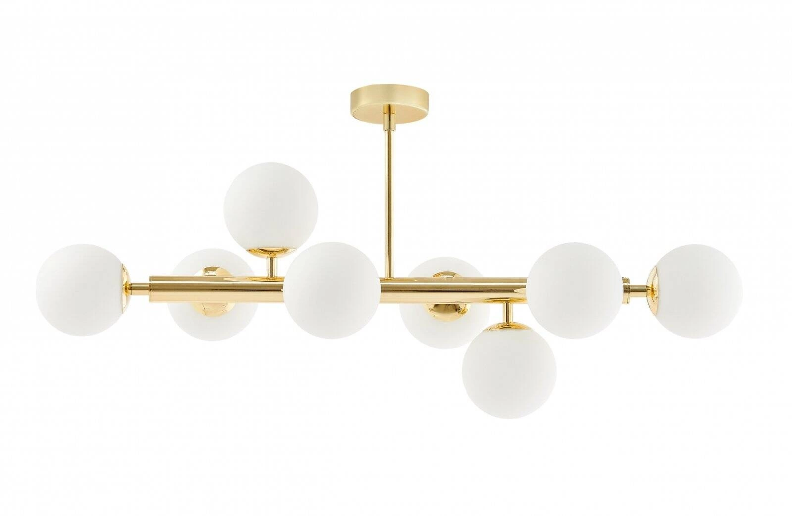 Charakterystycznym elementem lampy CUMULUS 8 jest biały opalowy klosz, który pozwala na uzyskanie przyjemnego i równomiernego rozproszenia światła. Dzięki zastosowaniu aż 8 źródeł światła na trzonku E14, lampy sufitowe do jadalni i innych przestrzeni stają się jeszcze bardziej funkcjonalne. Warto podkreślić, że maksymalna moc wynosząca 9 W dla każdego źródła zapewnia odpowiednią ilość światła, której potrzebujesz, aby stworzyć przytulną atmosferę w swoich wnętrzach.