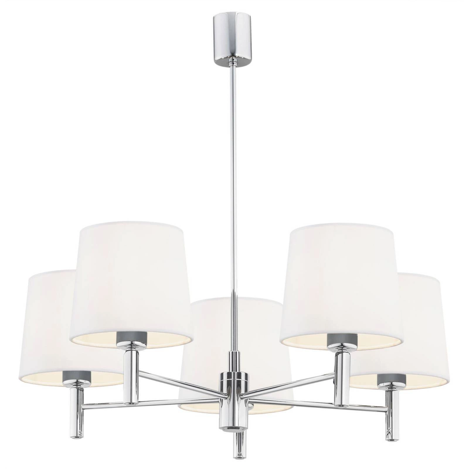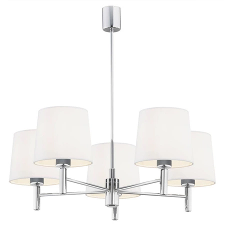 Żyrandol BOLZANO PLUS (2110) marki Argon to elegancki element oświetleniowy, który wspaniale dopełni aranżację Twojego wnętrza. Wykonany z wysokiej jakości stali w kolorze chrom, żyrandol prezentuje się niezwykle nowocześnie, a jednocześnie z klasą, co sprawia, że idealnie wpisuje się w różnorodne style, zwłaszcza w klasyczny oraz Hampton. Biały klosz nadaje mu lekkości i subtelności, a pięć punktów świetlnych zapewnia odpowiednią ilość światła w pomieszczeniu, sprawiając, że jest to idealny wybór do jadalni, salonu czy sypialni.