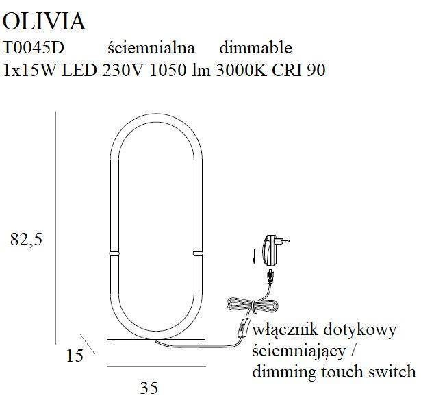 Wśród zalet, które wyróżniają tę nowoczesną lampę stołową, należy wymienić zintegrowane źródło światła LED. Dzięki niemu, lampy stołowe LED zapewniają nie tylko oszczędność energii, ale także długą żywotność, co czyni je wyborem ekologicznym i ekonomicznym. OLIVIA została wyposażona w opcję ściemniania, co umożliwia dostosowanie natężenia światła do indywidualnych potrzeb oraz nastroju chwili. To czyni ją idealnym rozwiązaniem do sypialni, salonu czy stylowej kuchni.