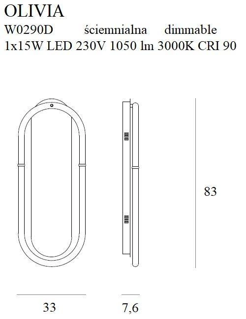 Kinkiet OLIVIA oferuje strumień światła wynoszący 1050 lumenów, co sprawia, że jest to idealne światło do użytku w różnych pomieszczeniach. Dzięki jednemu zintegrowanemu źródłu światła LED o maksymalnej mocy 15 W, lampa emituje przyjemne, ciepłe światło o temperaturze barwy 3000 K. Taki rodzaj oświetlenia sprawdzi się doskonale zarówno w sypialni, przy łóżku, jak i w łazience, przy lustrze. Kinkiet OLIVIA to idealny wybór dla tych, którzy cenią sobie zarówno estetykę, jak i komfort użytkowania.