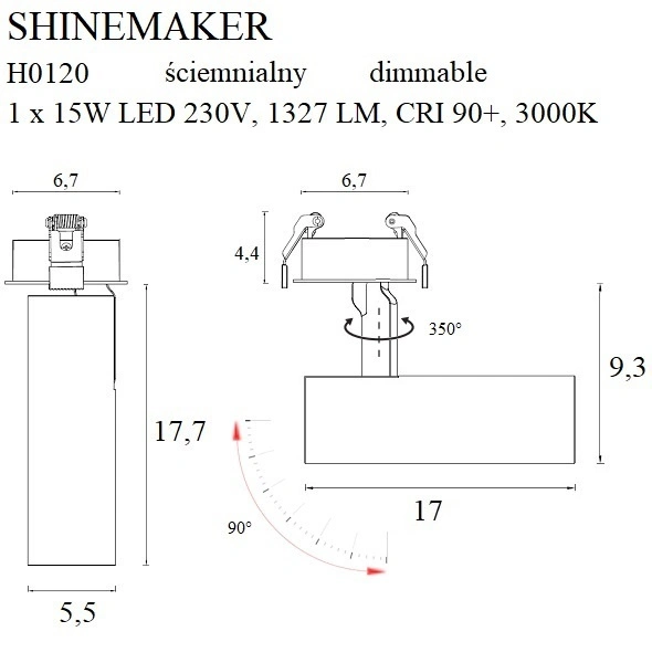 Lampa wpuszczana SHINEMAKER została wykonana z metalu, co nadaje jej nie tylko elegancki wygląd, ale także trwałość. Jej stopień ochrony IP20 sprawia, że lampa jest idealna do zastosowań wewnętrznych. Maksymalna moc wynosząca 15W oraz kąt świecenia 36° sprawiają, że lampa skutecznie oświetla przestrzeń, podkreślając detale architektoniczne i dekoracyjne. Lampy wpuszczane metalowe cieszą się obecnie dużą popularnością wśród architektów i designerów wnętrz, a model SHINEMAKER z pewnością spełni oczekiwania nawet najbardziej wymagających użytkowników.