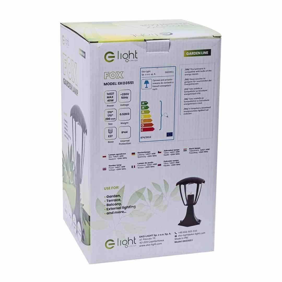 Wybierając lampę ogrodową stojącą FOX BLACK 1xE27 od Eko-Light, inwestujesz w jakość i elegancję. Niezależnie od tego, czy planujesz przyjęcie w ogrodzie, czy po prostu chcesz cieszyć się spokojnymi wieczorami na świeżym powietrzu, ta lampa z pewnością sprosta Twoim oczekiwaniom. Przenieś swoje oświetlenie na wyższy poziom i ciesz się nowoczesnym, a zarazem klasycznym rozwiązaniem do swojego ogrodu!