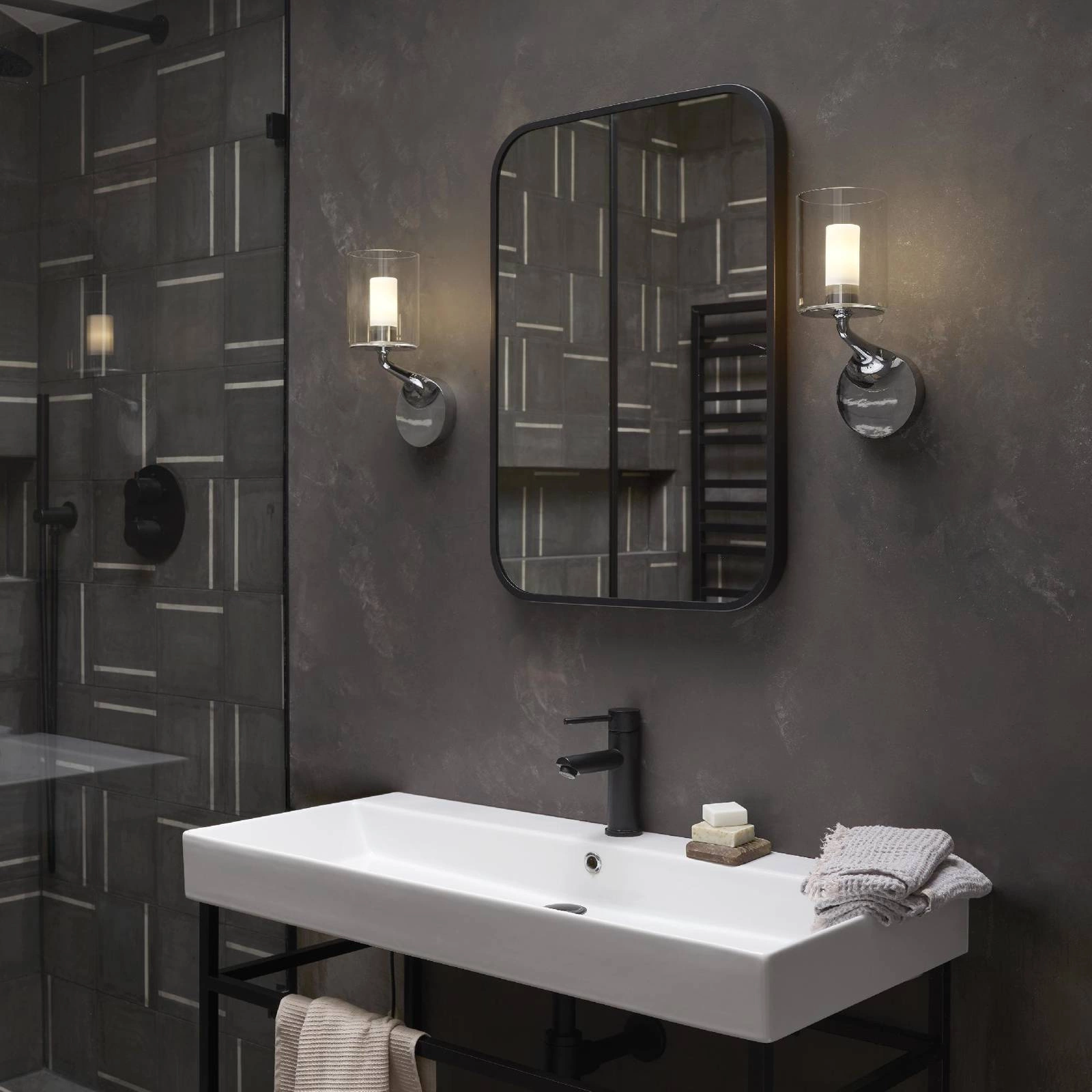 Kinkiet Elena wykonany jest z wysokiej jakości metalu w eleganckim kolorze chromu, co nadaje mu nowoczesny i minimalistyczny wygląd. Dzięki zastosowaniu trzonka G9, lampa ta gwarantuje szeroki wybór źródeł światła, które można dostosować do indywidualnych potrzeb. Dodatkowo, kinkiet posiada funkcję ściemniania, co umożliwia stworzenie atmosfery idealnej na relaksujące wieczory czy szybkie poranne rytuały w łazience. Jego stopień ochrony wynoszący IP44 zapewnia odpowiednią odporność na wilgoć, co czyni go idealnym rozwiązaniem do wnętrz narażonych na działanie wody.