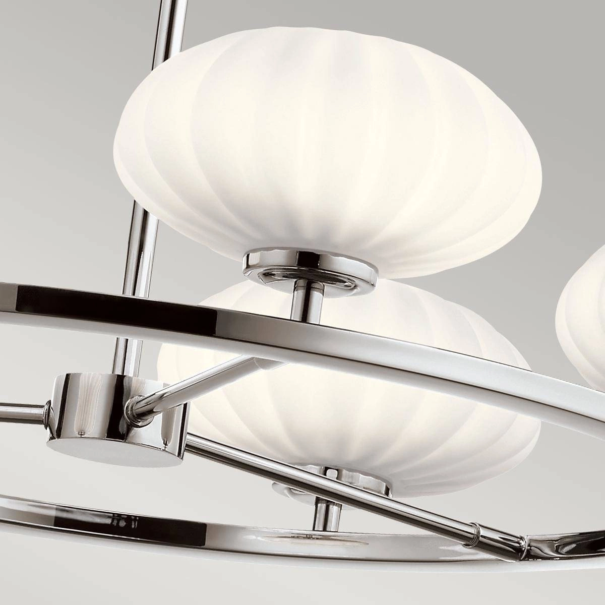 Jednym z najważniejszych atutów żyrandola Pim jest jego modny design, który doskonale wpisuje się w różne style aranżacyjne, takie jak nowoczesny, Hampton, Art Deco czy modern classic. Polerowany chrom, z którego wykonany jest ten żyrandol, nadaje mu elegancji i podkreśla nowoczesny charakter wnętrza. Dodatkowo satynowy kolor kloszy sprawia, że emitowane światło jest łagodne i ciepłe, tworząc przyjemną atmosferę w każdym pomieszczeniu.
