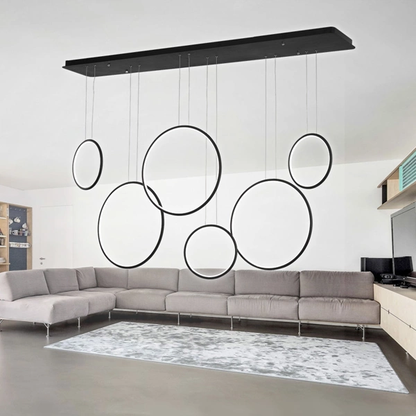 Jeśli poszukujesz lamp wiszących do przedpokoju nowoczesnych lub projektujesz nowoczesny salon, lampa wisząca Ledowe Okręgi no. 8 będzie idealnym wyborem. Jej minimalistyczny, a zarazem efektowny design sprawia, że doskonale wpisuje się w trendy dzisiejszego wystroju wnętrz. Lampy wiszące metalowe w kolorze czarnym to uniwersalne rozwiązanie, które świetnie harmonizuje z różnymi stylami aranżacyjnymi, od industrialnych po nowoczesne. Wybierz lampę wiszącą LED od Altavola Design i ciesz się pięknym, funkcjonalnym oświetleniem, które odmieni każde wnętrze.