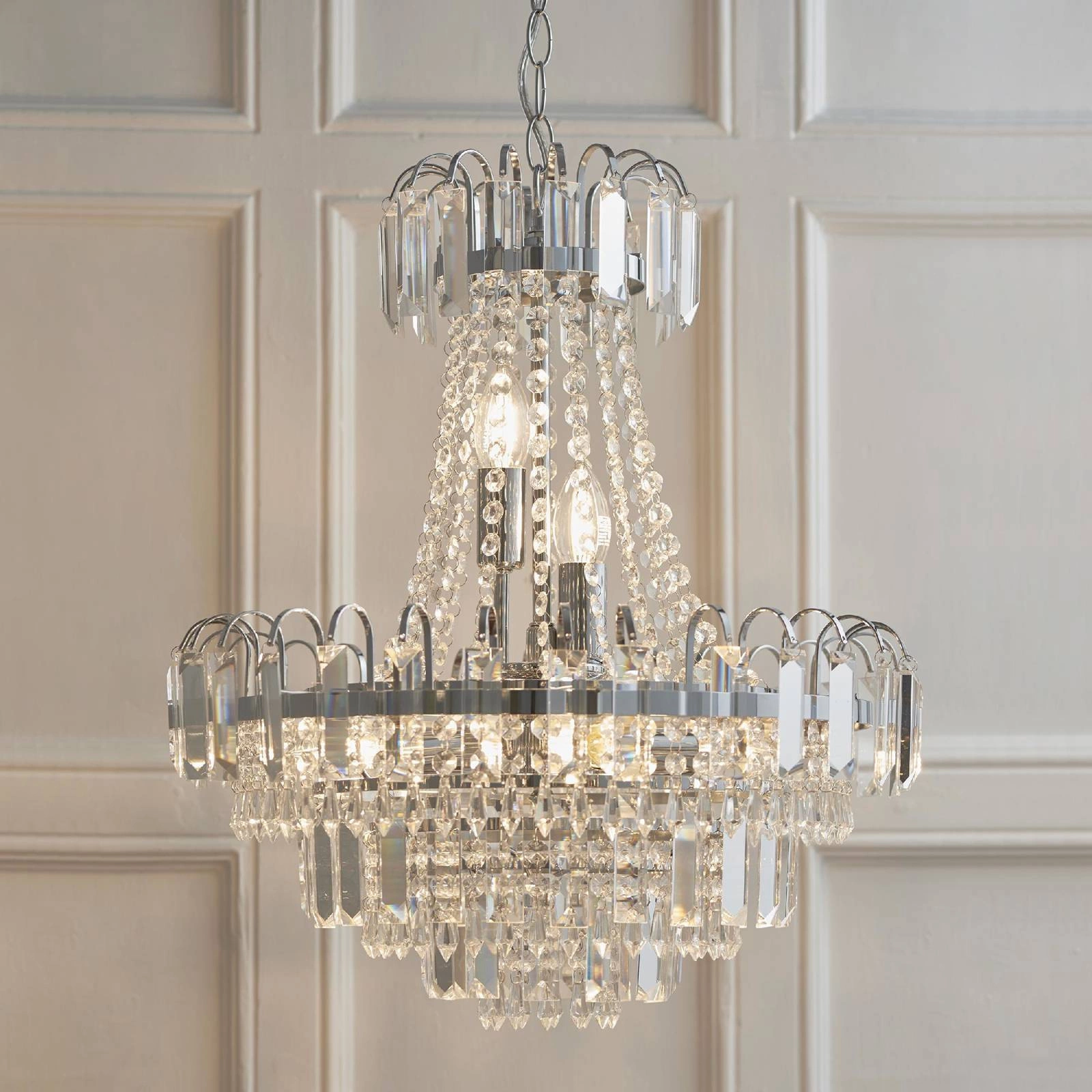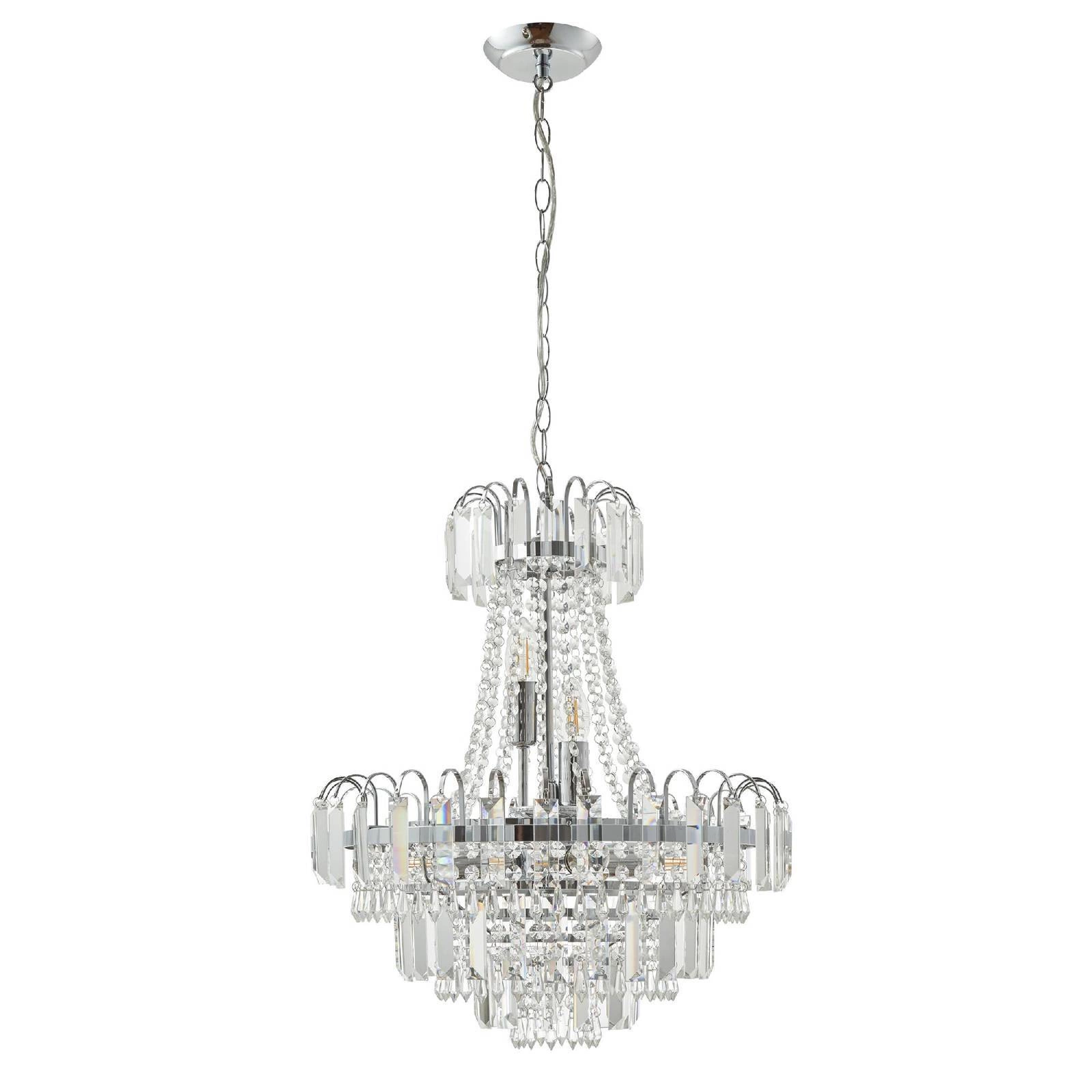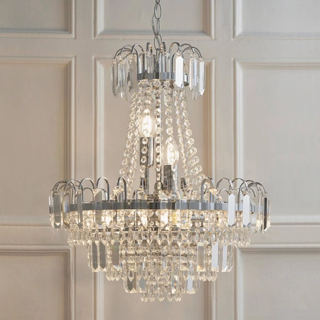 Lampa Wisząca Amadis (kod produktu: 96826-CH) marki Endon to elegancki element wystroju, który zachwyca zarówno swoim designem, jak i funkcjonalnością. Ta lampa wisząca jest idealnym wyborem do wnętrz urządzonych w stylu glamour, klasycznym, rustykalnym czy art deco. Dzięki swojemu wykończeniu z przezroczystego szkła oraz chromowanej płyty, Amadis wprowadza do pomieszczenia odrobinę luksusu oraz elegancji. Wymiary oraz forma lampy sprawiają, że z łatwością wkomponuje się w różnorodne aranżacje, a jednocześnie stanie się ich centralnym punktem.